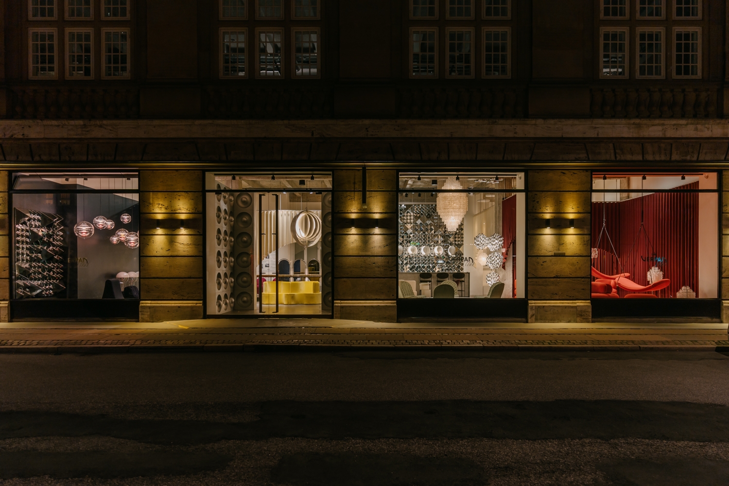 The showroom is located in a classic old property on the central Copenhagen. As one of the first concrete buildings in Copenhagen the space has an industrial look and feel to it.