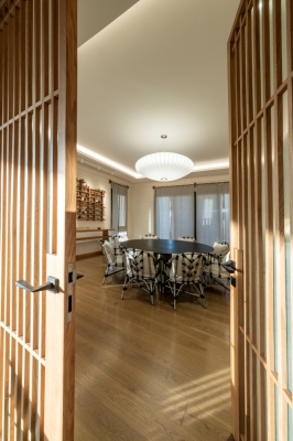 As evening falls, tunable luminaires shift to warmer tones, transforming the space into a tranquil and intimate setting. The lighting design strikes a balance between functionality and aesthetics, creating a spacious and inviting atmosphere. High-color rendering ensures that the colors of the furnishings and materials remain vibrant under artificial light, enhancing the overall comfort of the occupants.