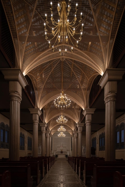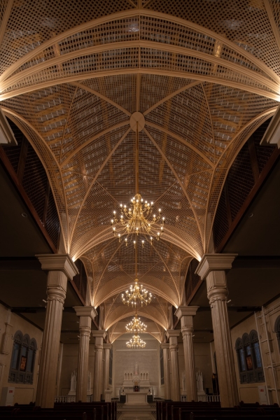 At the time the church was originally built, due to the limitations of lighting equipment and technology, the lighting design was relatively simple. However, as technology has advanced, lighting now offers designers an unprecedented platform for creative expression. The intelligent lighting system is divided into six layers, combining to create various lighting scenes. 1. Roof trusses and tiles: Subtle, point light sources provide insufficient illumination, evoking a sense of historical atmosphere.2.Gothic sub-ceiling: Area lighting highlights the renewed Gothic sub-ceiling, blending religious significance with a sense of historical evolution.3.Chandelier lighting: Independent chandelier lighting recreates the original lighting relationships typical of historic churches.