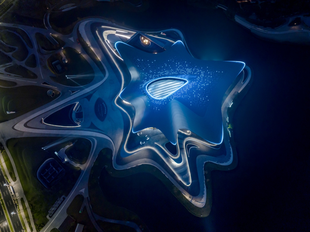 Entry DescriptionThe ancient Shu Eye in the center of the building's roof is the core of the entire building. The lighting brightness level connects the interior and extends outward from the center, blending with the scattered stars scattered on the surrounding roofs. Through dynamic control, the variable state of the nebula is simulated. The undulating and stretching roof edges illuminate the concave surface through surface light, while strengthening the roof boundary by lines at the nebula corners, making the image of the building's "nebula" more rich and three-dimensional at night.