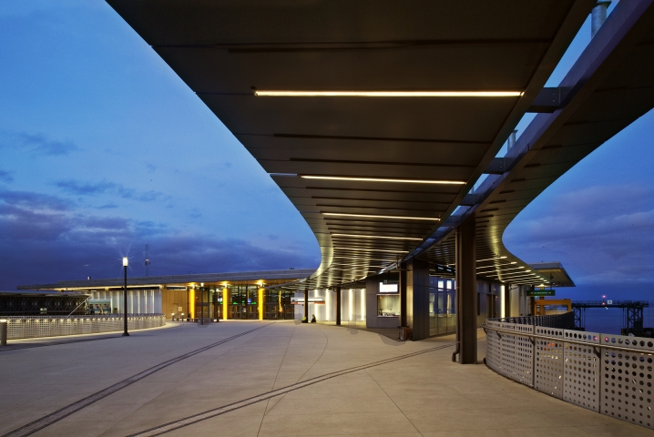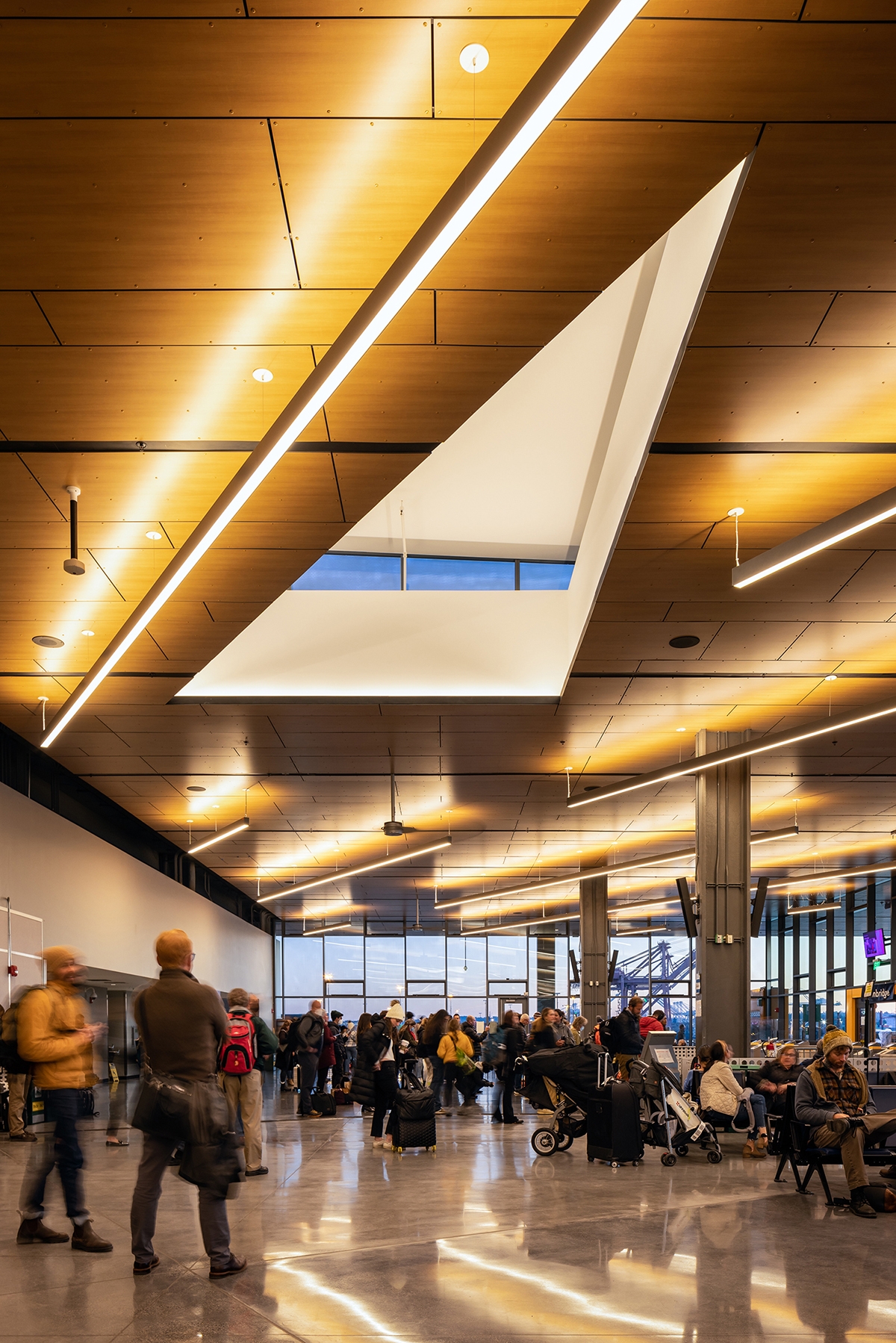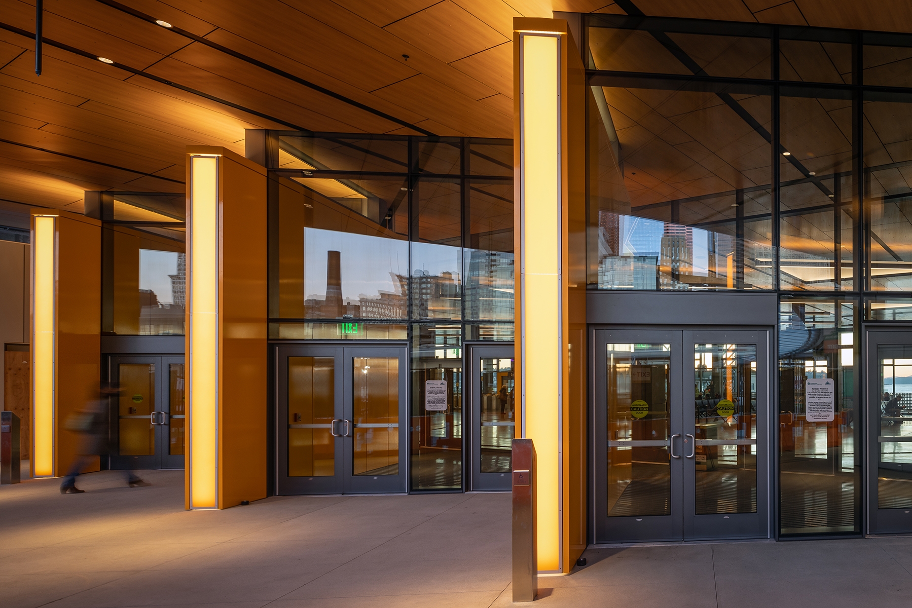 Sustainability ApproachSustainability and respect for the terminal's maritime setting were paramount in the design process, resulting in energy consumption that is 16% below the stringent requirements of local codes, while still maintaining the minimum light levels required by agency standards. Special attention was paid to preventing light trespass into the adjacent marine habitats, safeguarding the natural environment.