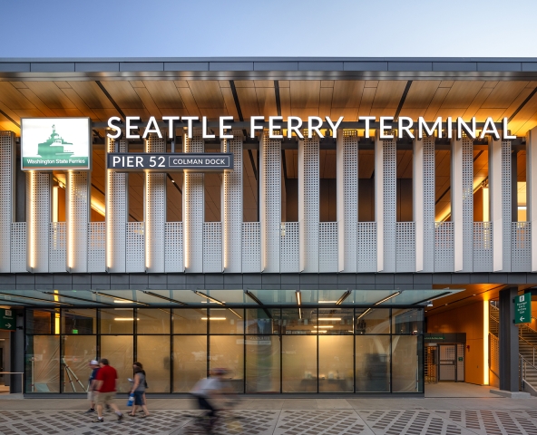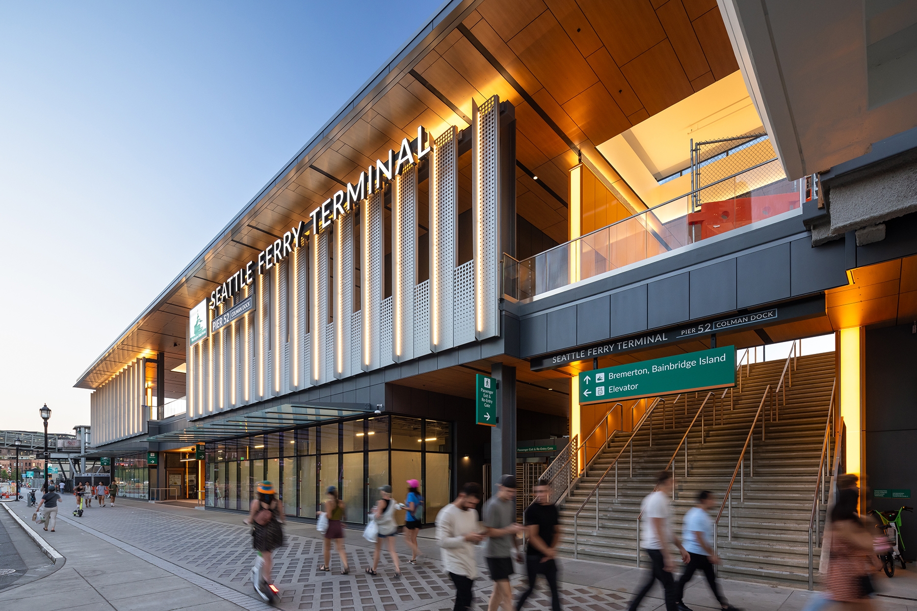 Entry DescriptionThe Seattle Ferry Terminal, serving 10 million annually, blends architectural elegance with functional design, enhancing the visitor experience.