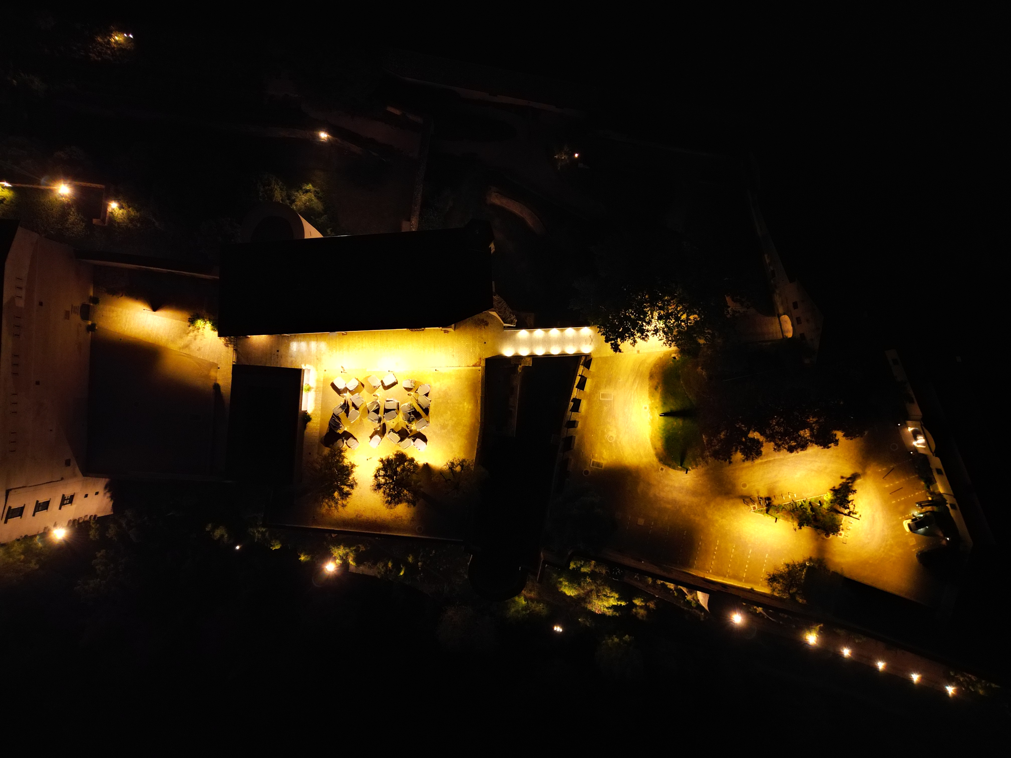 If no one is present in any part of the property, the courtyard lighting is switched off early and switched to motion detectors.