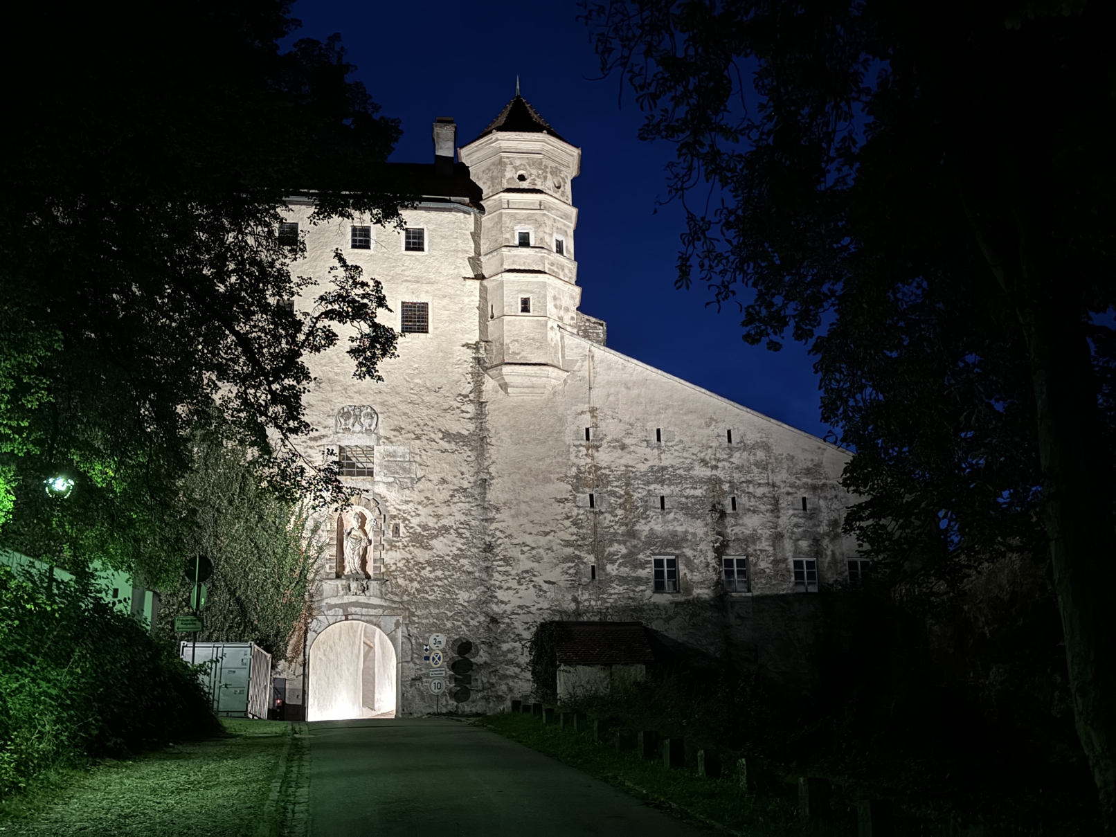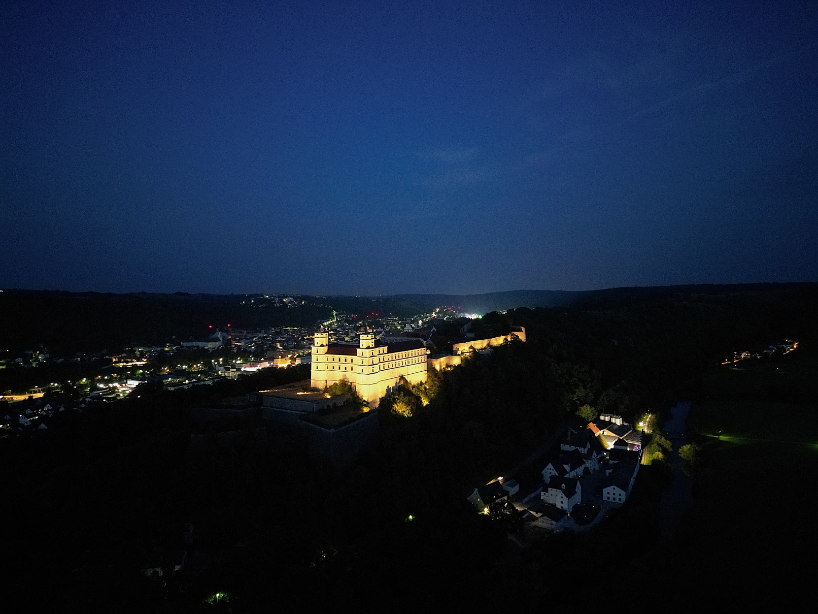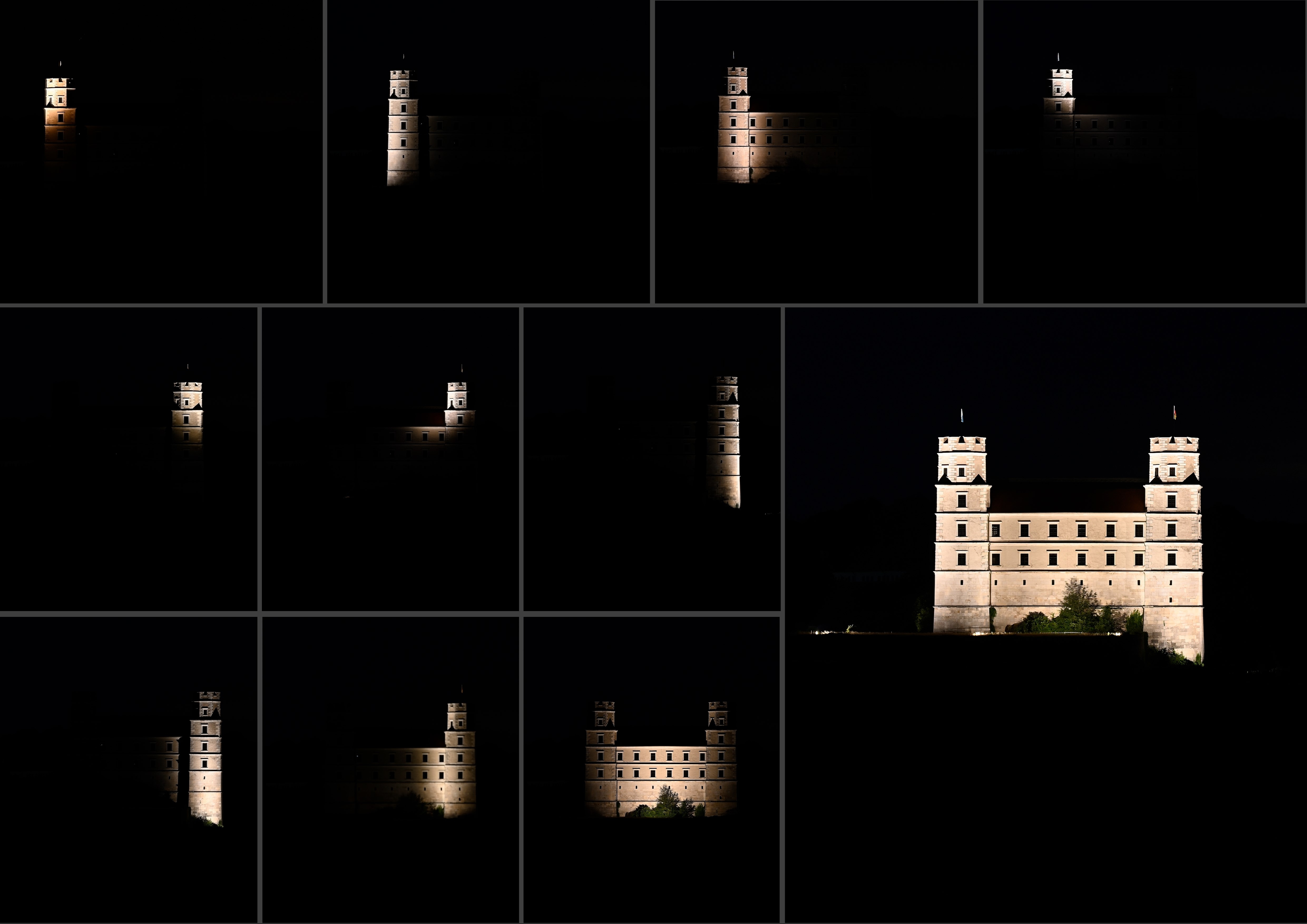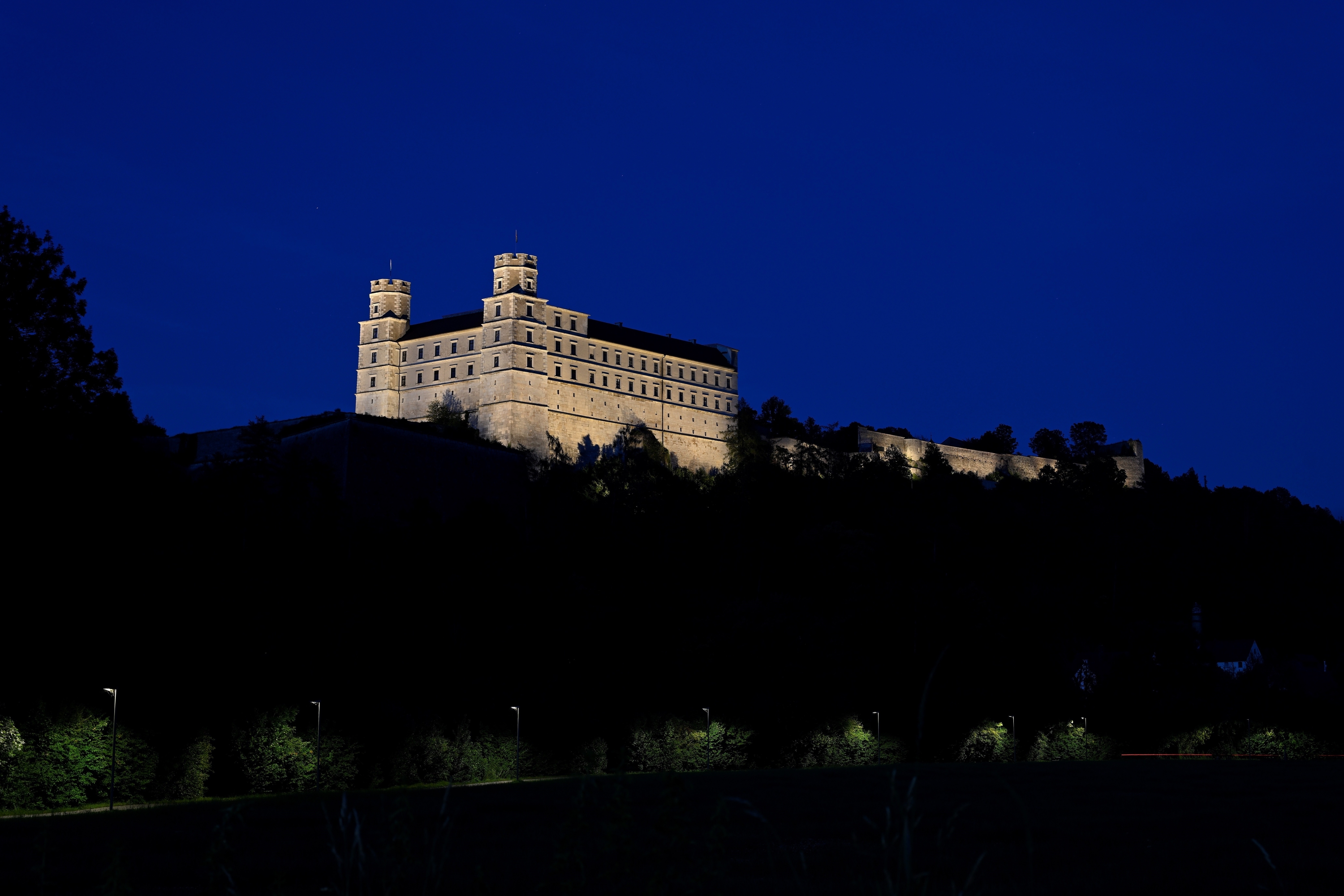 Entry DescriptionWillibaldsburg Castle in Eichstätt, a historical jewel from the 14th century, shines in a new light. The innovative exterior lighting not only highlights the castle's architectural splendor, but also pays tribute to its historical significance. The lighting combines state-of-the-art lighting technology with a deep respect for the history and aesthetics of the building. It emphasizes the striking towers, the mighty walls and the intricate details of the façades, creating a harmonious interplay of light and shadow. The spotlights are equipped with precise optics that enable targeted illumination of the architectural details without outshining the surroundings.
