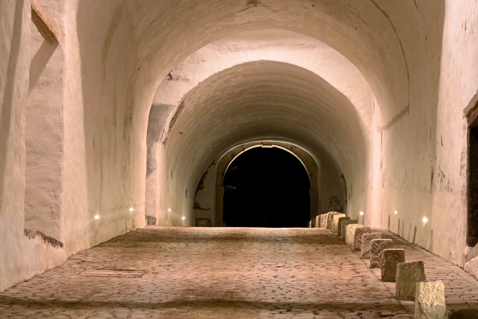 By cleverly integrating the lighting into the traffic routes and open spaces, the light is gently reflected across the surfaces, creating a harmonious and atmospheric overall picture. The warm white LEDs with a color temperature of 2700 Kelvin provide an inviting yet respectful setting for the historic structures.