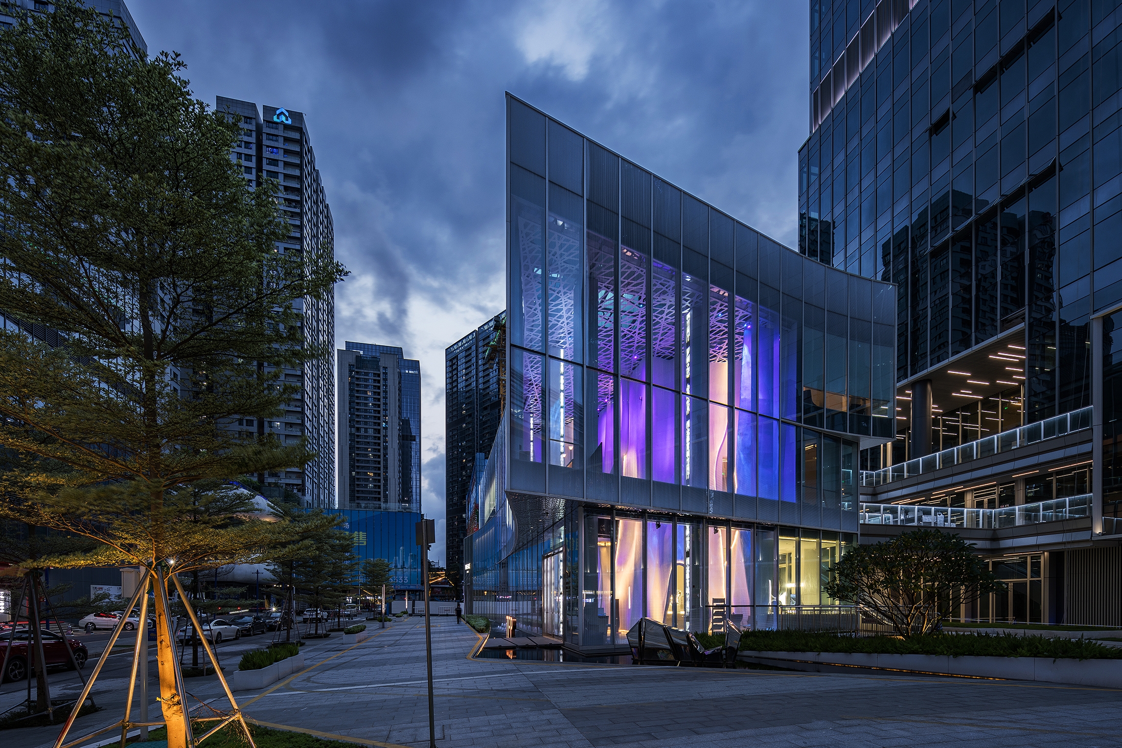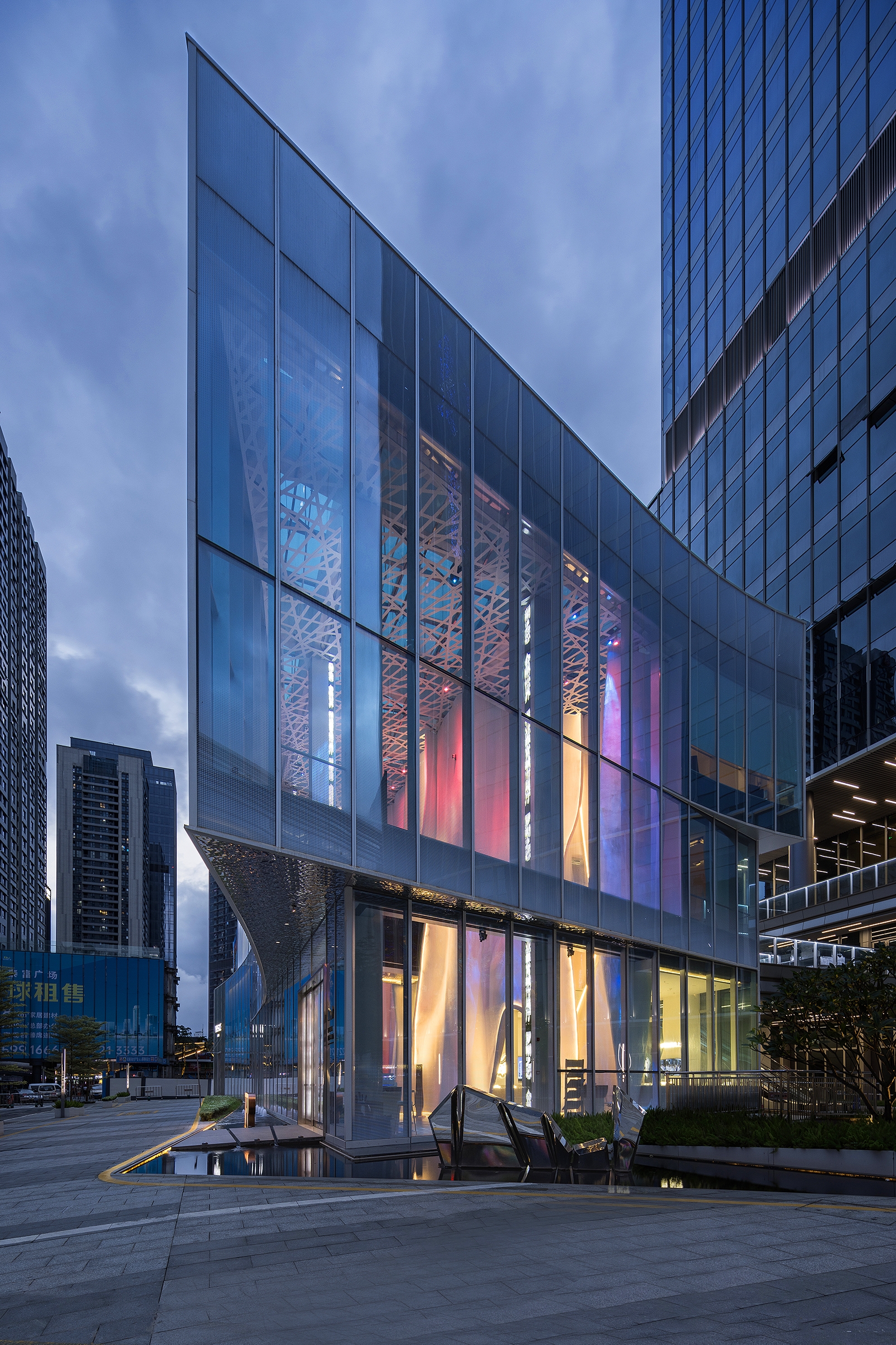 Entry DescriptionShumYip Taifu KeChuang Marketing Center is based on the concept of the interior design “The VeiL- City Lounge” of the architecture, and the unique spatial form designed with lighting effects serves as the architectural lighting expression for the marketing center. As a real estate marketing center, the lighting not only showcases the architectural uniqueness but also emphasizes the brand tone of the property itself, conveying the architect's intention to create a design concept of contrast and harmonious integration.