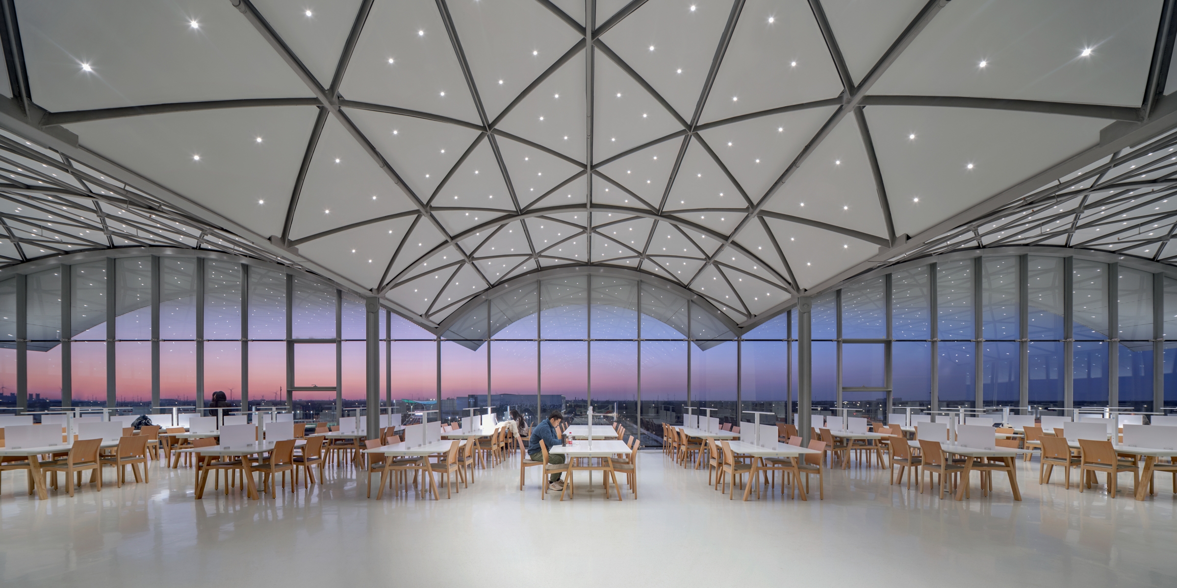 Sustainability ApproachThe Library of the Ninghe Campus at the Civil Aviation University of China (CAUC) integrates green design from the outset, following scientific methods and selecting efficient lighting systems to optimize energy use, in line with the GB 50034-2013 standard.
