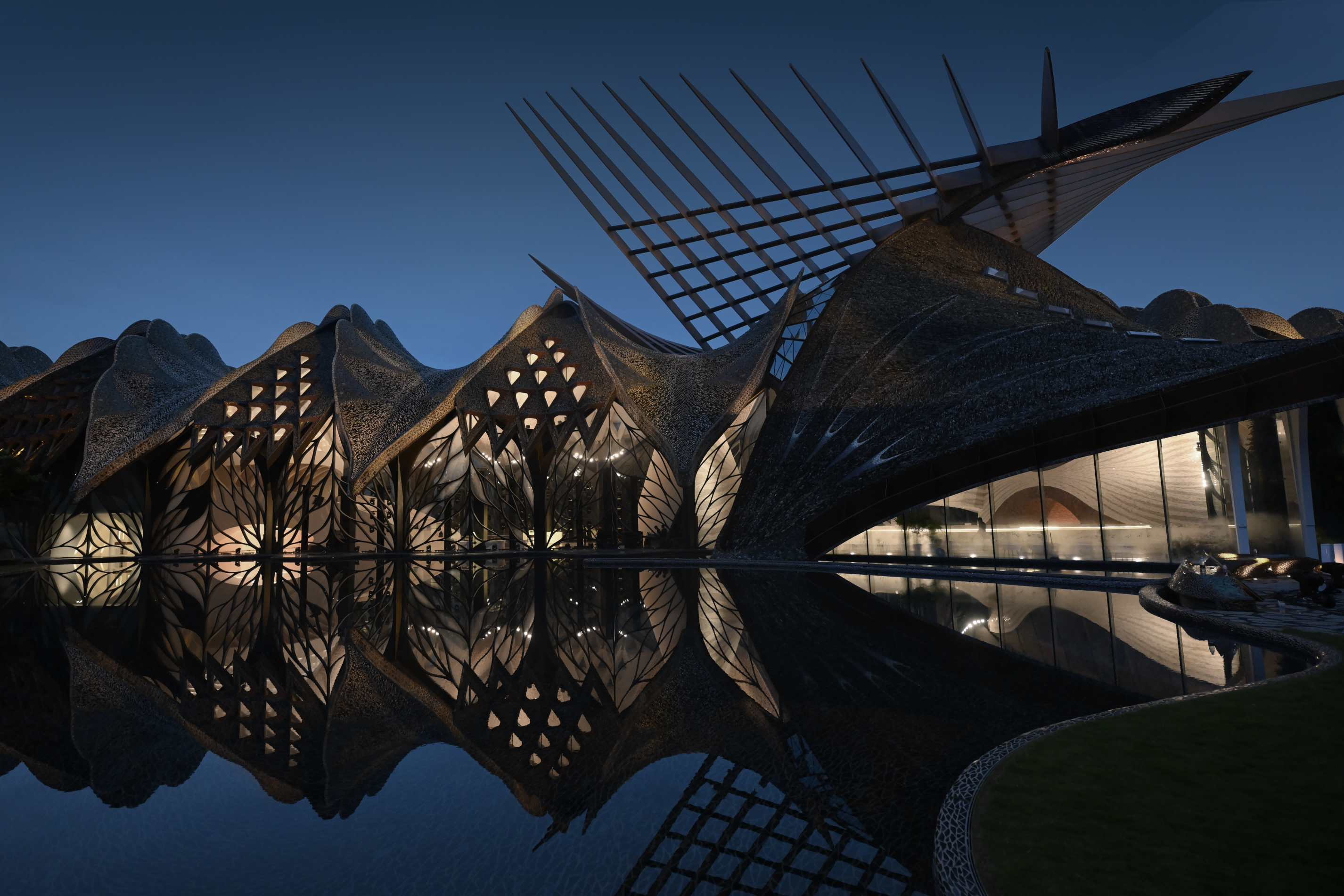 Entry DescriptionThe Marisfrolg Headquarters Building is located in the Longhua Dalang Fashion Town, Shenzhen. Its overall design concept not only seeks a harmonious coexistence between the built environment and nature but also emphasizes the core values of environmental protection and sustainability. The architecture aims to highlight the structural design of natural elements, enhance the quality of indoor spaces, and achieve a seamless integration with the natural environment. The lighting design not only accentuates the beauty of the space's biomimetic structures and improves the overall quality of the indoor environment but also perfectly blends with the natural surroundings. The meticulously selected energy-efficient LED luminaires and intelligent control systems not only meet the varying illumination requirements and comfort of light in different spaces but also demonstrate the ingenuity and sophistication of the lighting design while conserving energy. The precision of the lighting layout not only enhances the spatial hierarchy, rhythm, and atmosphere but also represents an artistic creation, causing the building to resemble a waking bird at dusk, ready to take flight, brimming with vitality. This lighting design project undoubtedly sets a new standard for the illumination of biomimetic architectural spaces.