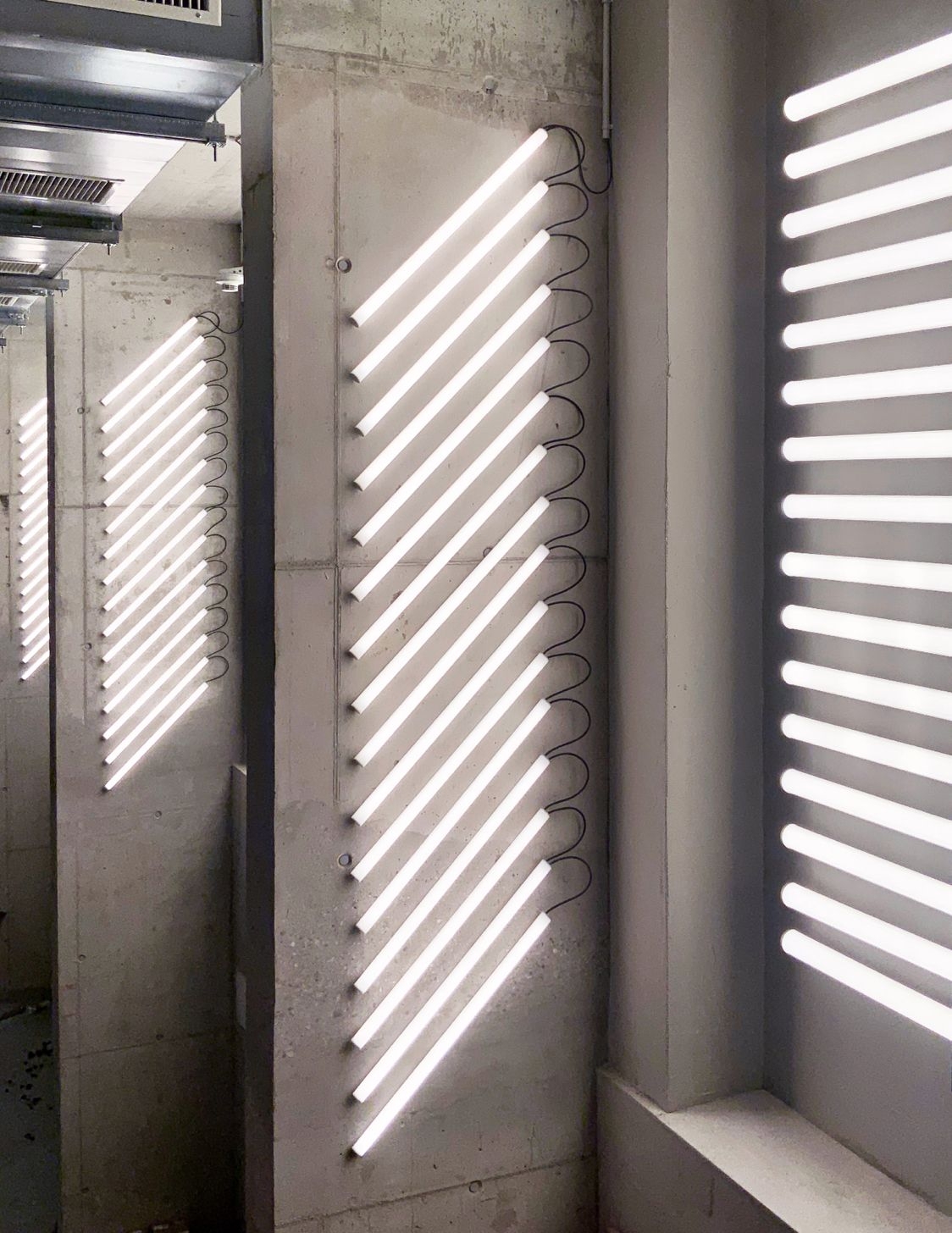 Derived form a bare diffuse LED light tube lighting language of industrial nostalgia for the rough concrete brute aesthetics of the space, we provided a powerful but not overpowering lighting stimulant with a sense of unquestioned, natural lighting direction, intensity, and ease.