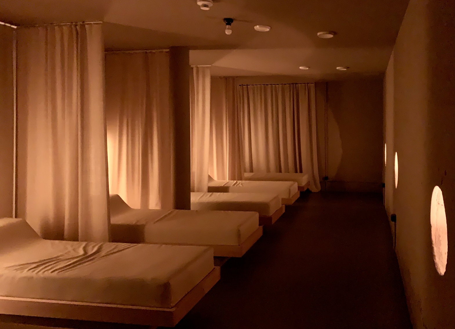 Stimulating well-being, providing architectural identity, and visually connecting the adjacent main machine room, changing rooms, reception, sauna and yoga room, the massive lighting installation surprisingly goes unnoticed for most users of the fitness club who enjoy the quasi natural, bright vibe of the space to fully concentrate on their fitness goals of the day.