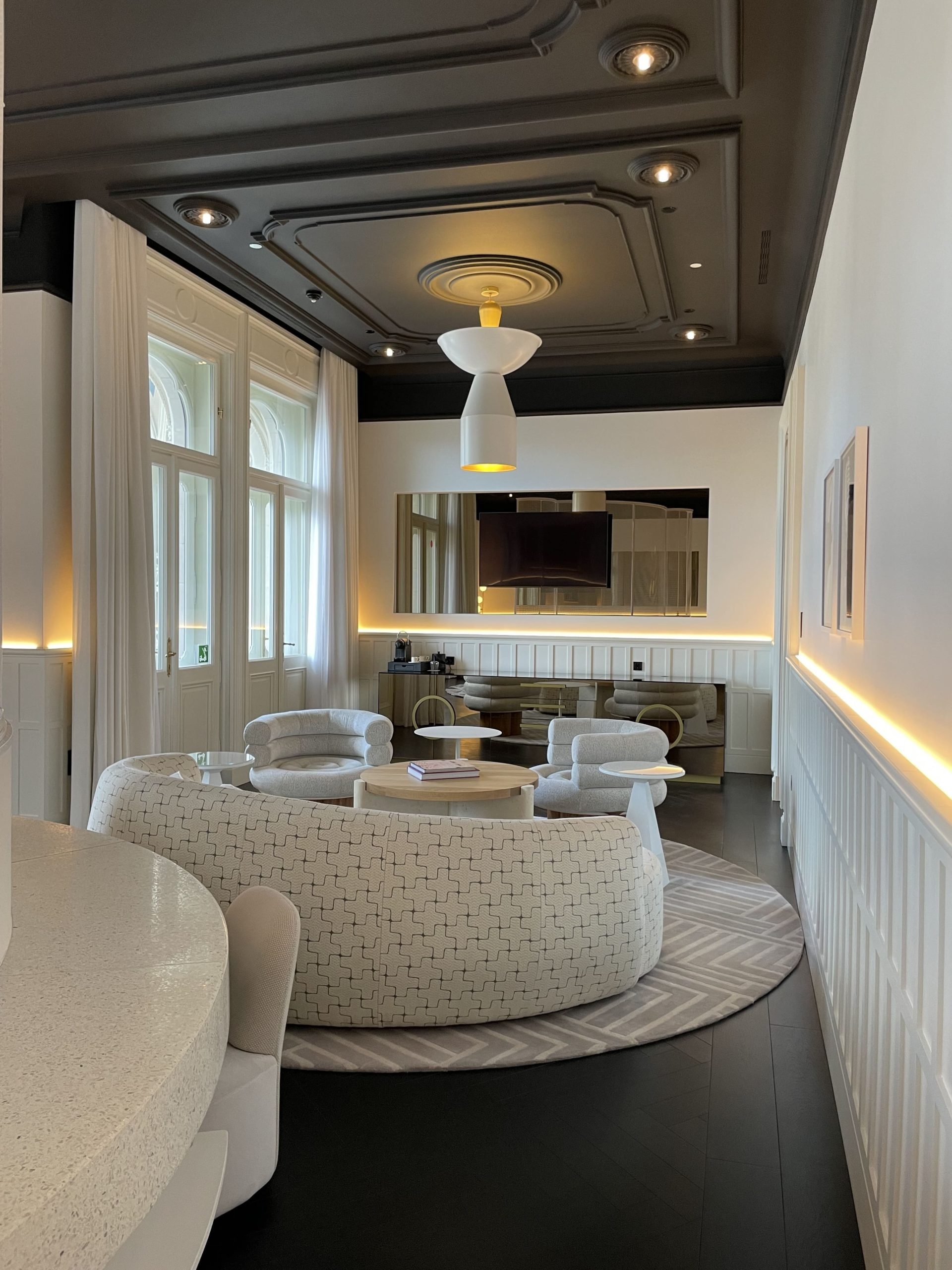 Entry DescriptionThe W Hotel Budapest, located in the historic Drechsler Palace, blends history with modern luxury. Inside, it metaphorically resurrects the rhythms of classical ballet with a rhythmic dance of brilliance, light, and color. This complements the new interior design proposal based on contemporary arabesque geometries, creating contrasts between elegance and sharpness, the classic and the avant-garde.