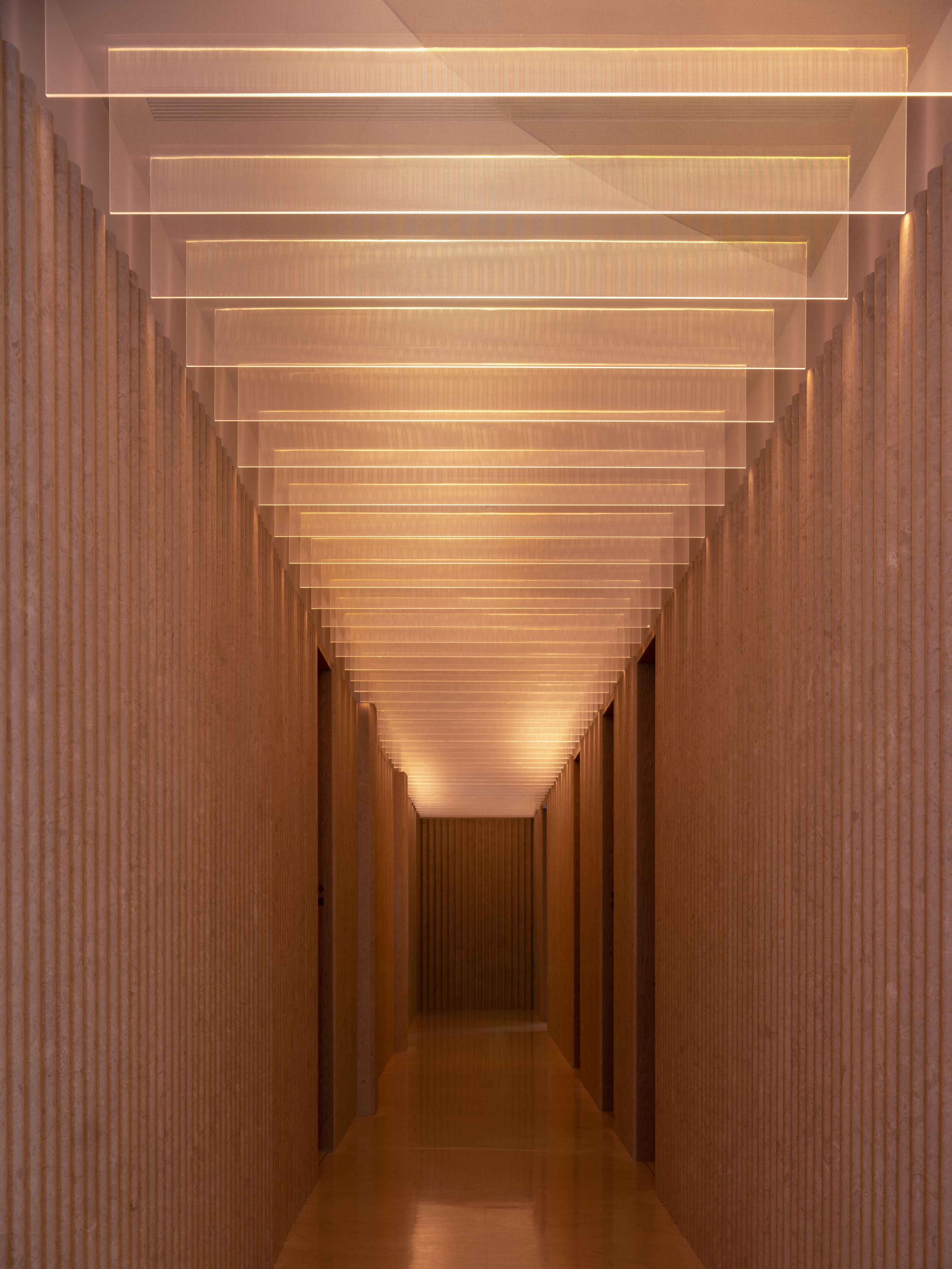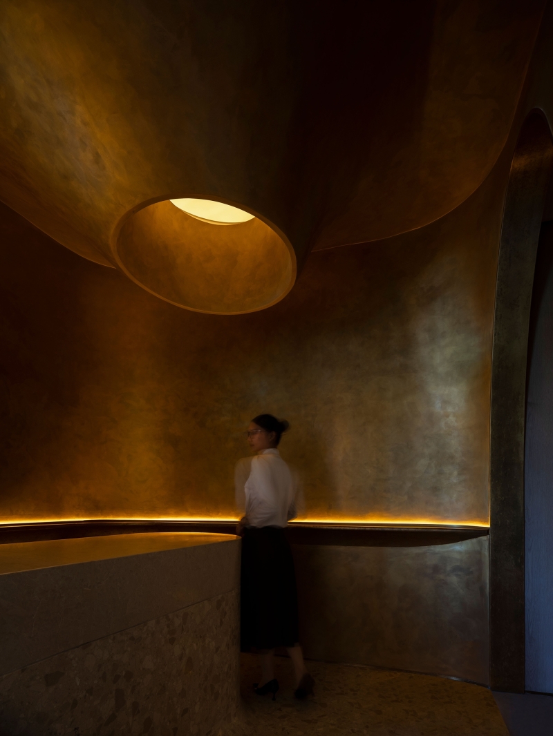 Entry DescriptionLocated in Shanghai’s Suhewan MixC World, Lu Style ranges over two floors and encompasses approximately 1,200 square meters.“soothing” and “subtle” best describe the first floor and corridor’s lighting, emanating from behind a veil of fluted glass, cascading down from the interstice between the copper ceiling and the supporting structure, illumining one’s way through the corridor.The dusk heralds a return to natural light. Dual dome controls empower an array of graded lighting options, so that the deeper the night, the warmer the hue, and the lower the brightness. Recessed spotlights adjacent to the skylight are likewise adjusted by a chronometer’s slow, sequential hand, for an effect resembling nothing so much as phases of the moon, each with its own unique light to shine through the glass and into the dome, imbuing the closed quiescence with an authentic sense of time’s passing. "My Parlor" employs a new media syntax -digital art- to recreate what was originally a closed space.The color and brightness of natural light and the "abstract wind" are displayed on the ceiling of the corridor through the control of the lighting program, which realizes the original design intention of the sky light and the shadow wandering together.Light is a medium, in the environment, it is a symbol, material, emotion, the hidden power of light condenses in every corner of the space.