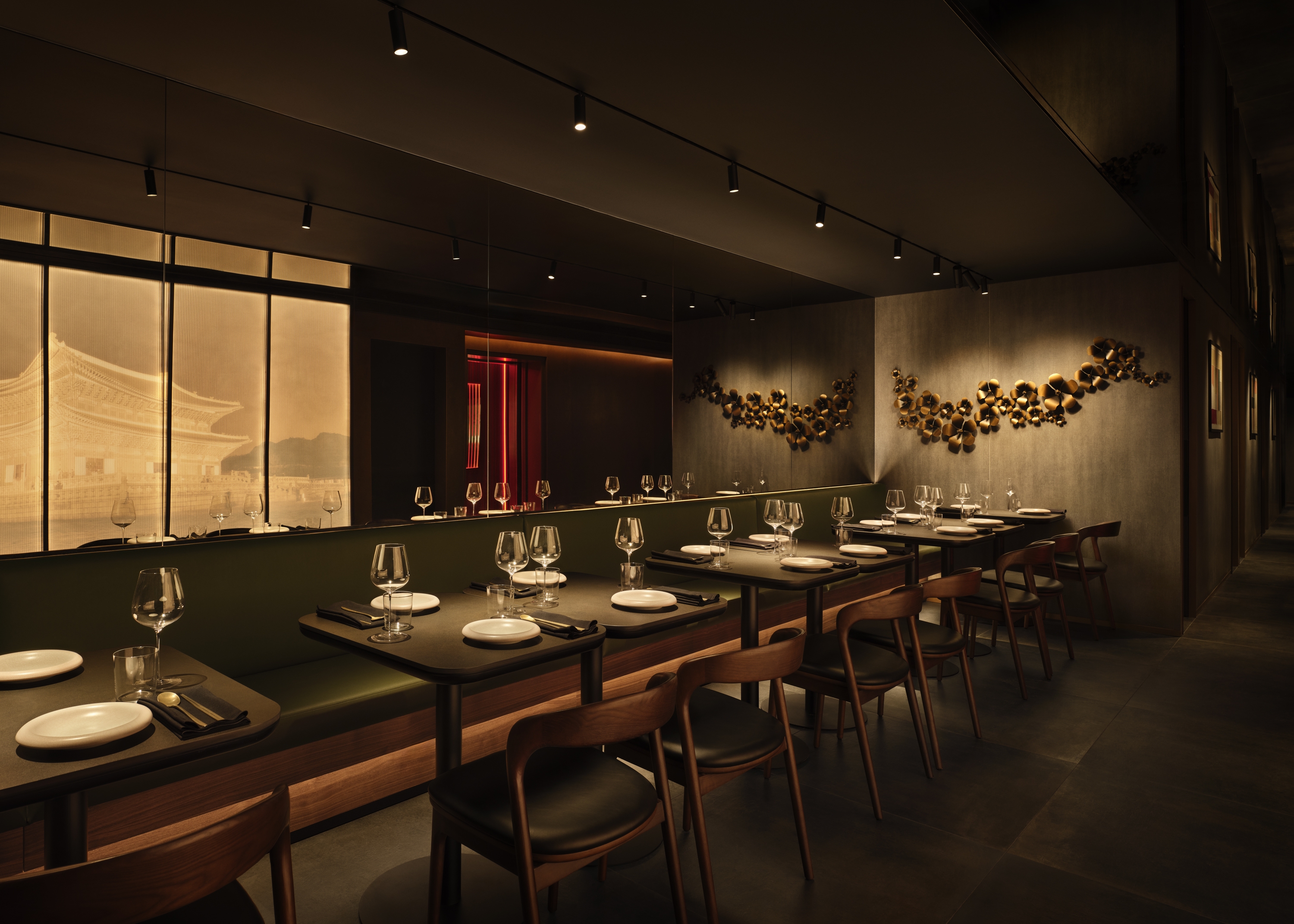 Entry DescriptionAnto 35 is a high-end Korean steakhouse in the heart of New York City, merging Eastern tradition and Western modernity. A curved bar counter, highlighted by recessed spotlights, establishes a striking focal point. Concealed fixtures trace its curves, while ceiling cove lighting guides guests through the space.