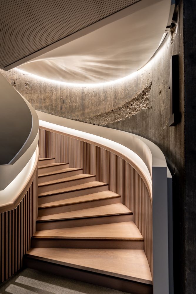 Sustainability ApproachHigh-quality, efficient fixtures have been used, and the number of fixtures has been calculated down to a minimum. Lighting is only provided where it is needed, and in many areas, the design prioritizes need and experience over recommended light levels. High demands have been placed on the energy efficiency of the fixtures, especially due to the limited space available for lighting equipment, which required high standards for optics and efficiency.There are also stringent quality requirements for the fixtures to ensure durability and stability, resulting in a long-lasting lighting system. An extensive control system has been established. The lighting design team developed a complex and detailed functional description for lighting control.The pendant in 9th. floor is made of aluminum and is highly sustainable with its untreated appearance, recyclable,and waxed surface.