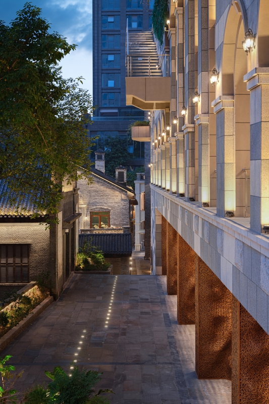 The project, as an embodiment of Eastern and Western cultures, resorts to lighting design to emphasize the architectural integration of the two cultures. The architecture and landscape accentuate the overall leisure atmosphere, preserving historical characteristics during the day while guiding the way through lighting at night. The landscape seamlessly blends with the architecture, allowing visitors to experience the nighttime environment as they move through different settings. In consideration of functionality, the lighting design focuses on specific areas such as an expansive landscape platform that offers a panorama view of the cityscape on the other side of the river. Additionally, hidden lamps are employed to minimize visual obstructions and reduce interference. The skateboard park prioritizes both safe lighting and visually appealing graffiti.