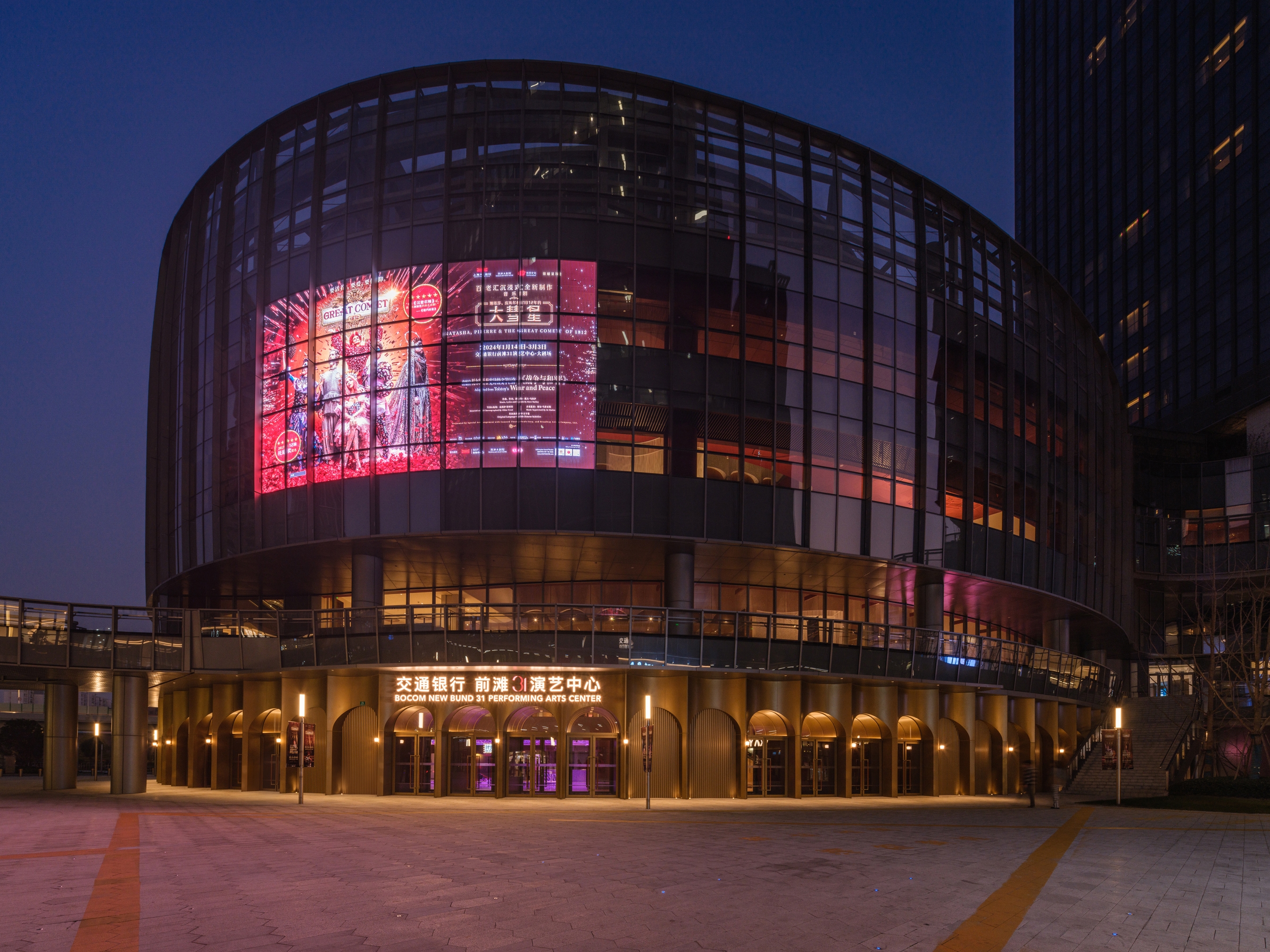 Entry DescriptionSituated along the bank of the Huangpu River amongst a cluster of shiny new skyscrapers?the New Bund 31 Performing Arts Center houses a grand theater , well positioned to become an architectural landmark and cultural destination for the community.