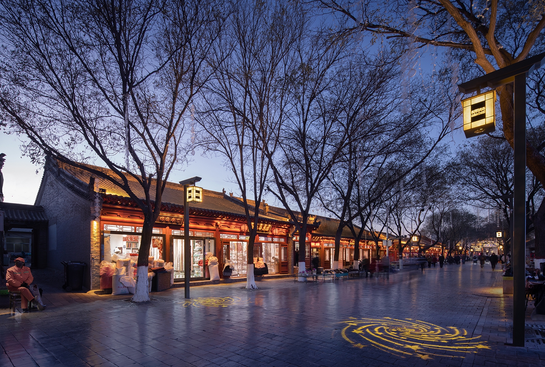 A key challenge was to install the lighting without damaging the heritage buildings. We opted for a non-contact installation, using columns in concealed locations. Bespoke spotlights with bespoke shapes and colours matched the materials and structures of the buildings, creating a layered lighting effect. The designers used in-house lighting simulation software to accurately simulate the installation position, projection angle of the luminaires and lighting effects, solving the problems of limited installation space and a tight construction schedule.
