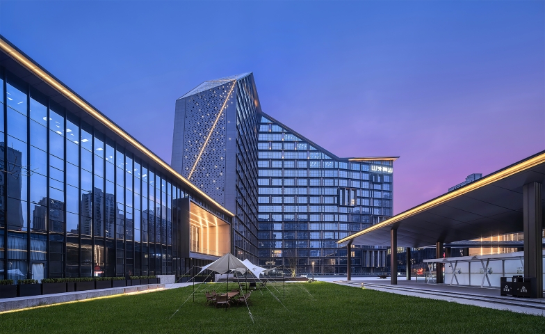 Sustainability Approach During the initial design phase, this project strictly adhered to relevant regulations, made reasonable lighting approaches, and determined the average brightness level of the building's exterior. All fixtures utilized LED light sources, with a focus on high-efficiency lighting. An intelligent lighting control system was implemented to establish energy-saving and nighttime modes. To prevent light pollution in the surrounding environment, strict control is exercised over the angle and power of the lights. The luminaires illuminate upwards and are shielded from stray light by overhanging eaves of the upper building layer. From 8:00 to 10:00 PM, for energy conservation purposes, only the lights at the top of the tower are retained to highlight the urban skyline at night.