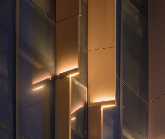 Different lighting approaches are applied to each facade of the building to interpret its multifaceted character. Since the interior spaces above the ground floor are all apartments, we have designed some ingenious lighting details combined with curtain walls to perfectly conceal the lighting fixtures within them. We have also strictly controlled the light emission angles to avoid glare.