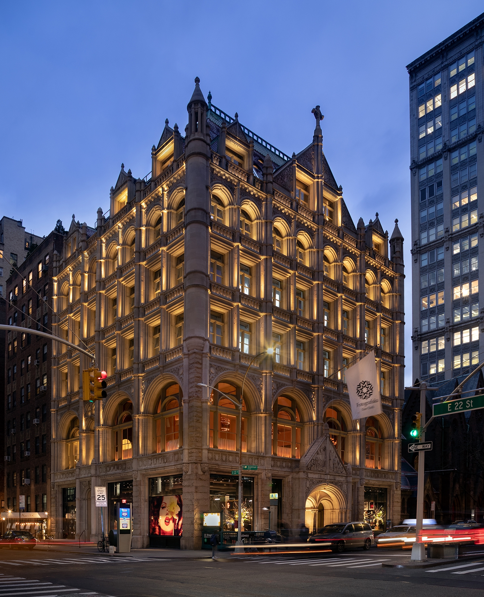 Entry DescriptionLocated on a prominent corner of the Flatiron District, this 1894 Renaissance revival Church House lay empty and neglected for many years. Today it is home for a progressive photography museum. Our goal was to illuminate the architectural details and bring attention to this NYC landmark. As the museum is open until late at night, the façade lighting frames the multilevel interior spaces from bookshop, restaurant and galleries seen from the street level.