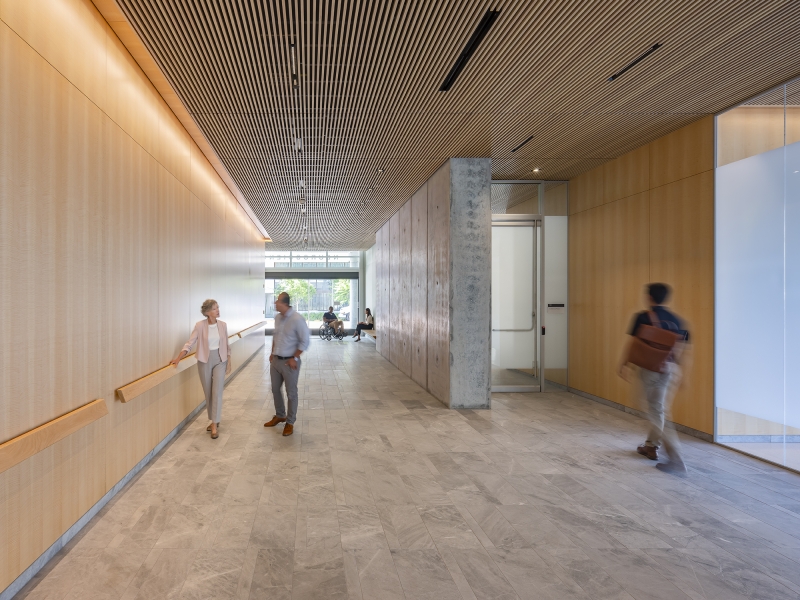 Sustainability ApproachThis lighting design recognizes that visual comfort, easy wayfinding and connection to the outdoors are critical for wellness of staff and patients. A focus on illuminating surfaces, layering of lighting and care with color temperatures provide maximum visual comfort for the occupants. Careful integration with daylight supports wayfinding, connection to nature, and reduced energy use. The quality luminous environment has an installed power significantly lower than the strict state code allows. This was achieved through careful design, using RADIANCE simulations to optimize fixture count and location while minimizing electrical demand. The atrium ground floor has an LPD of 0.32 W/sf, ? of that allowed under code. The reception area, patient corridors, exam rooms and conference rooms choreograph layers of architecturally integrated lighting to deliver LPDs well under code in each space.