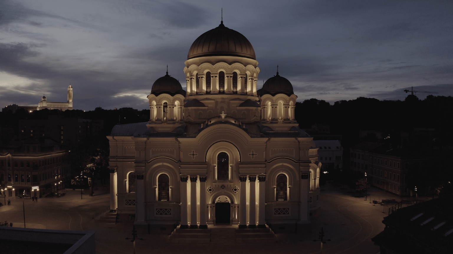 Entry DescriptionSoboras Church, an iconic landmark in Kaunas, Lithuania, is undergoing a lighting upgrade in conjunction with its renovation. The new lighting design focuses on enhancing the church's architectural beauty while ensuring that luminaires remain hidden, showcasing only the light itself.