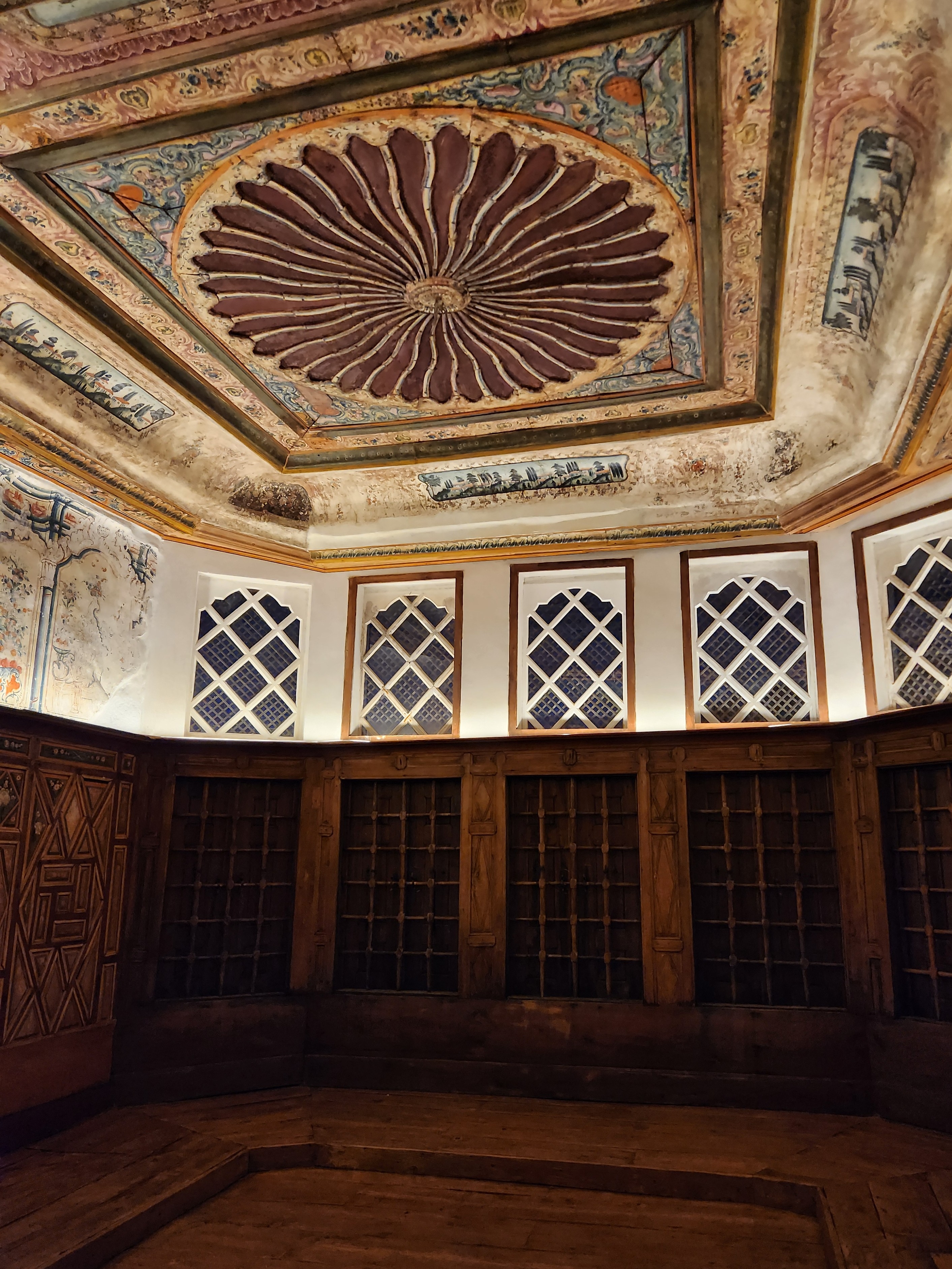 The lighting design for the mansion’s restoration emphasizes on the interior architectural elements, especially the ceiling frescoes, while employing advanced techniques to prevent photolytic degradation and ensure their preservation.
