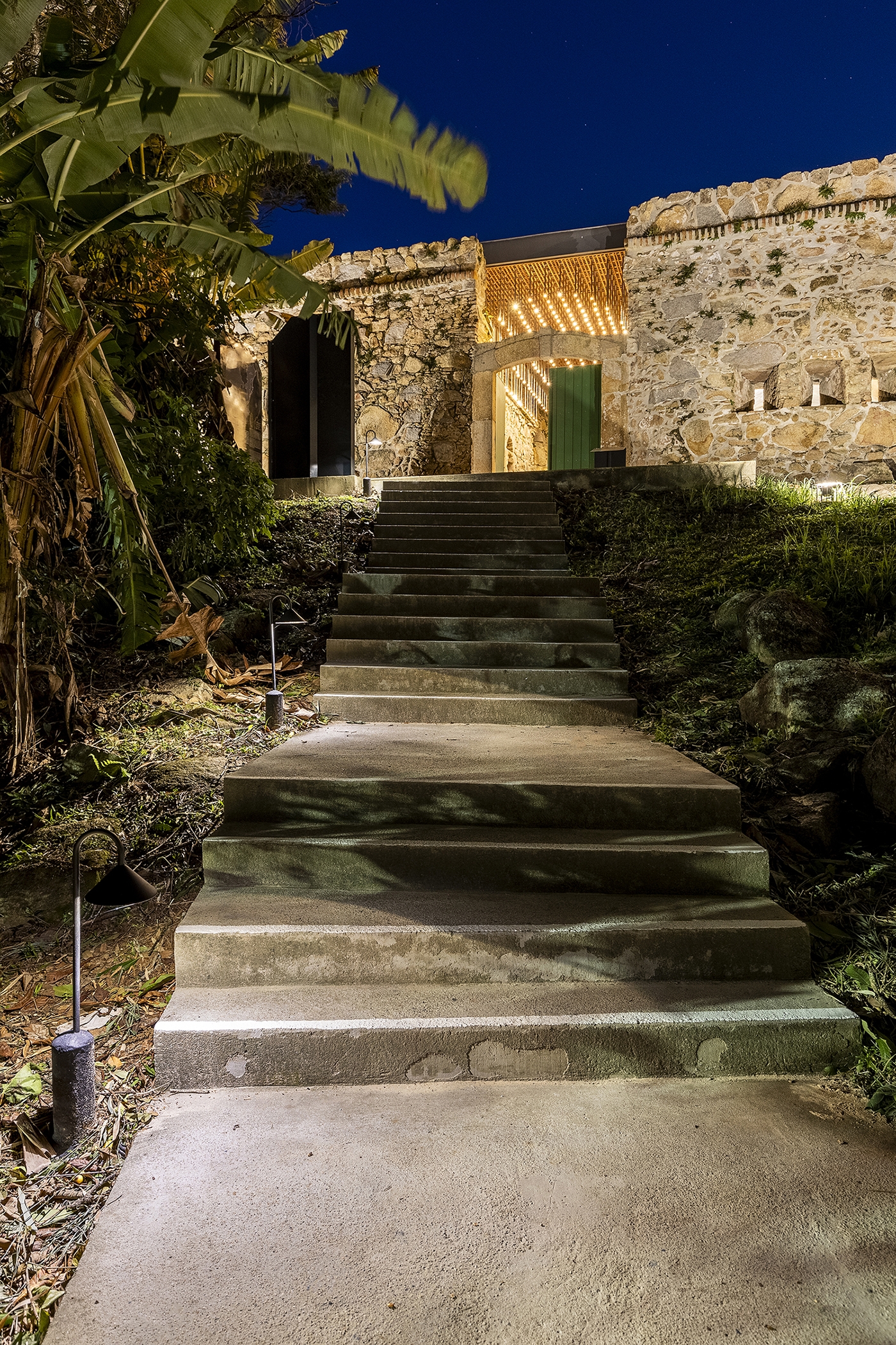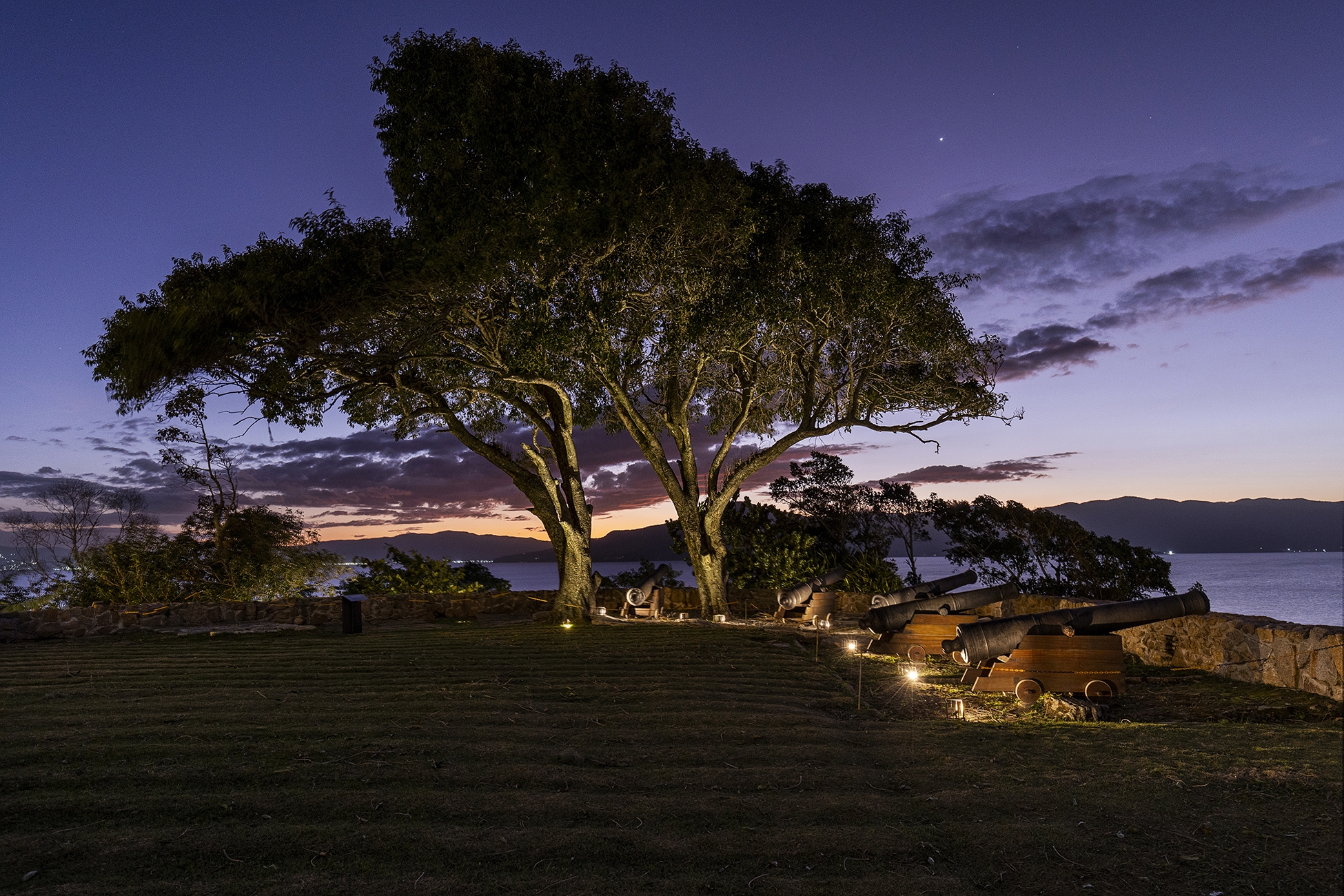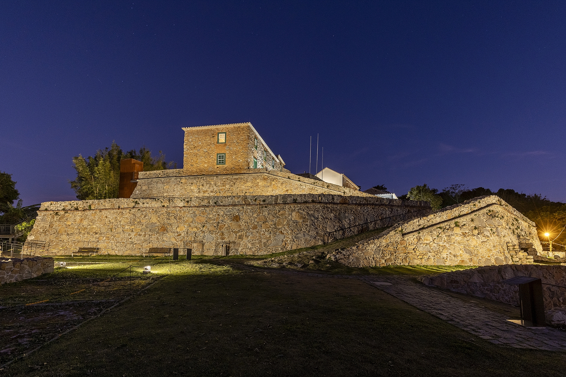 Entry DescriptionThe Fortress, dating from 1765 and listed by IPHAN since 1938, was part of the defensive system of Florianópolis, located approximately 25 km from the city center. The architectural complex is made up of thick walls and three buildings. The lighting was designed to reinforce the construction's protagonism in the landscape, offering it’s lighting a supporting role, indirectly, to reveal new elements, built in the revitalization process, highlighting their functionality, through contrast. The physical changes to the existing structure presented challenges in defining lighting solutions, as the objective was to keep artificial light sources imperceptible, avoiding physical interference in the building. The lighting concept consisted of using homogeneous lighting to uniformly highlight the different levels of the architectural complex, using diffused light equipment with low intensity, minimizing light pollution. Historical elements of the scene received direct and more intense lighting, such as artillery objects and cannons, while the vigils were illuminated internally in a diffuse way with a warm tone to highlight them and allude to their function as a vigil, evoking the presence of somebody. The main access to the interior of the Fortress received pendant lamps for general lighting of the space, alluding to the vaulted structure that existed there.