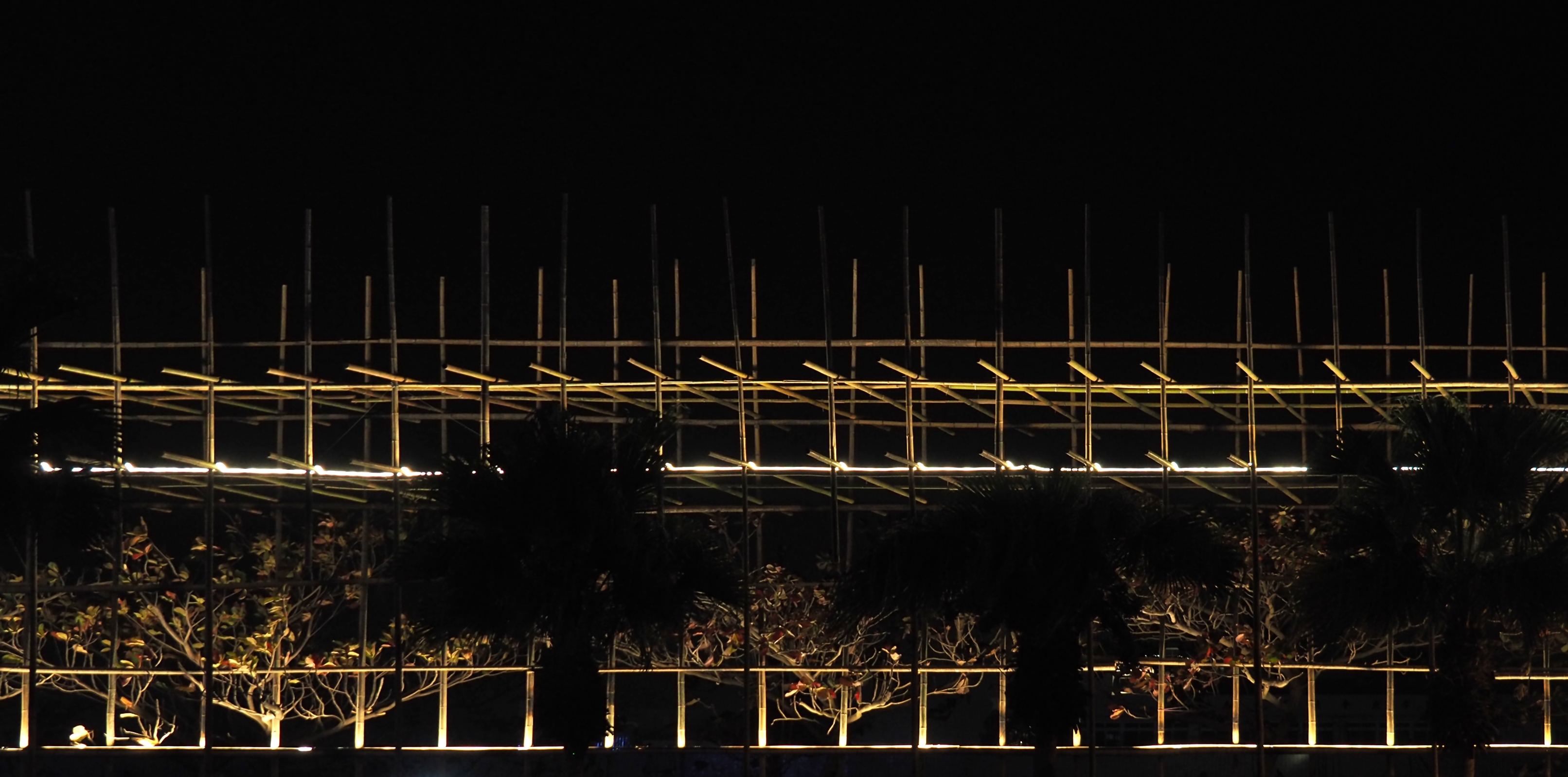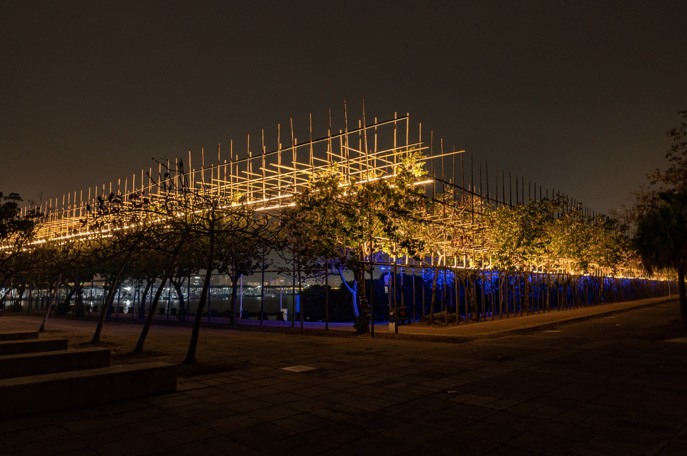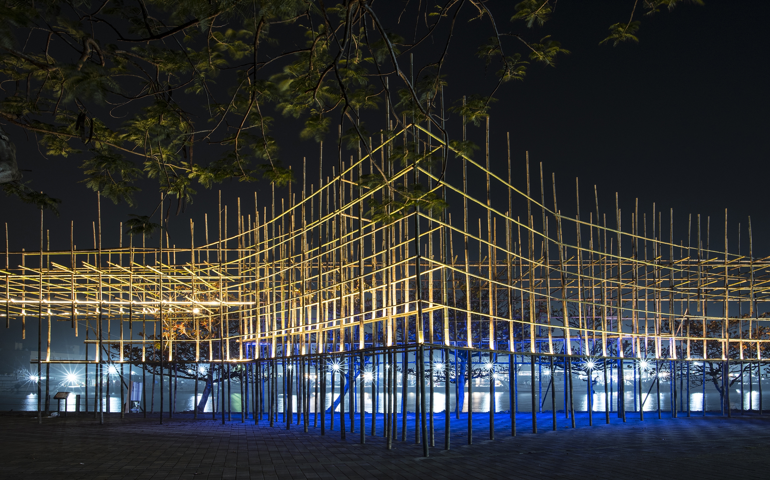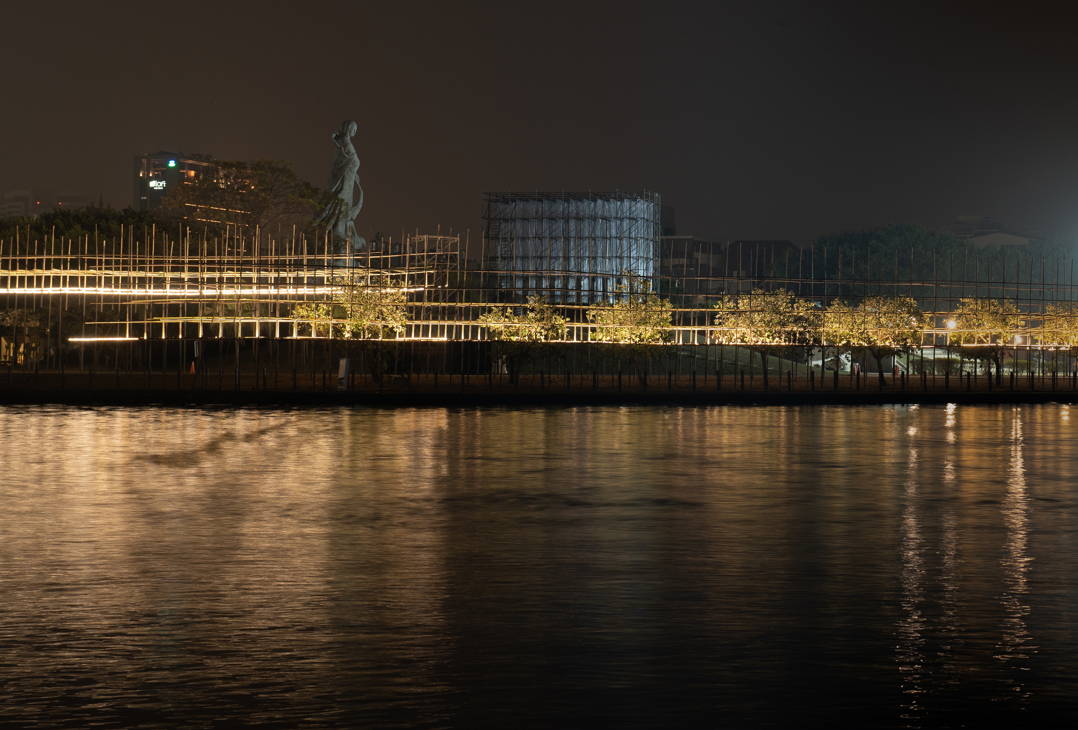 The flickering effect of the lighting design also echoes with the local activities, such as the flashing signal lights at the exit of the sea, the lights at the port, and the searchlights at the late-night fishing market. When people look back from the other side, they could see a massive yet light bamboo structure emitting warm lights. It becomes a poetic manuscript-like silhouette visible from afar at night.