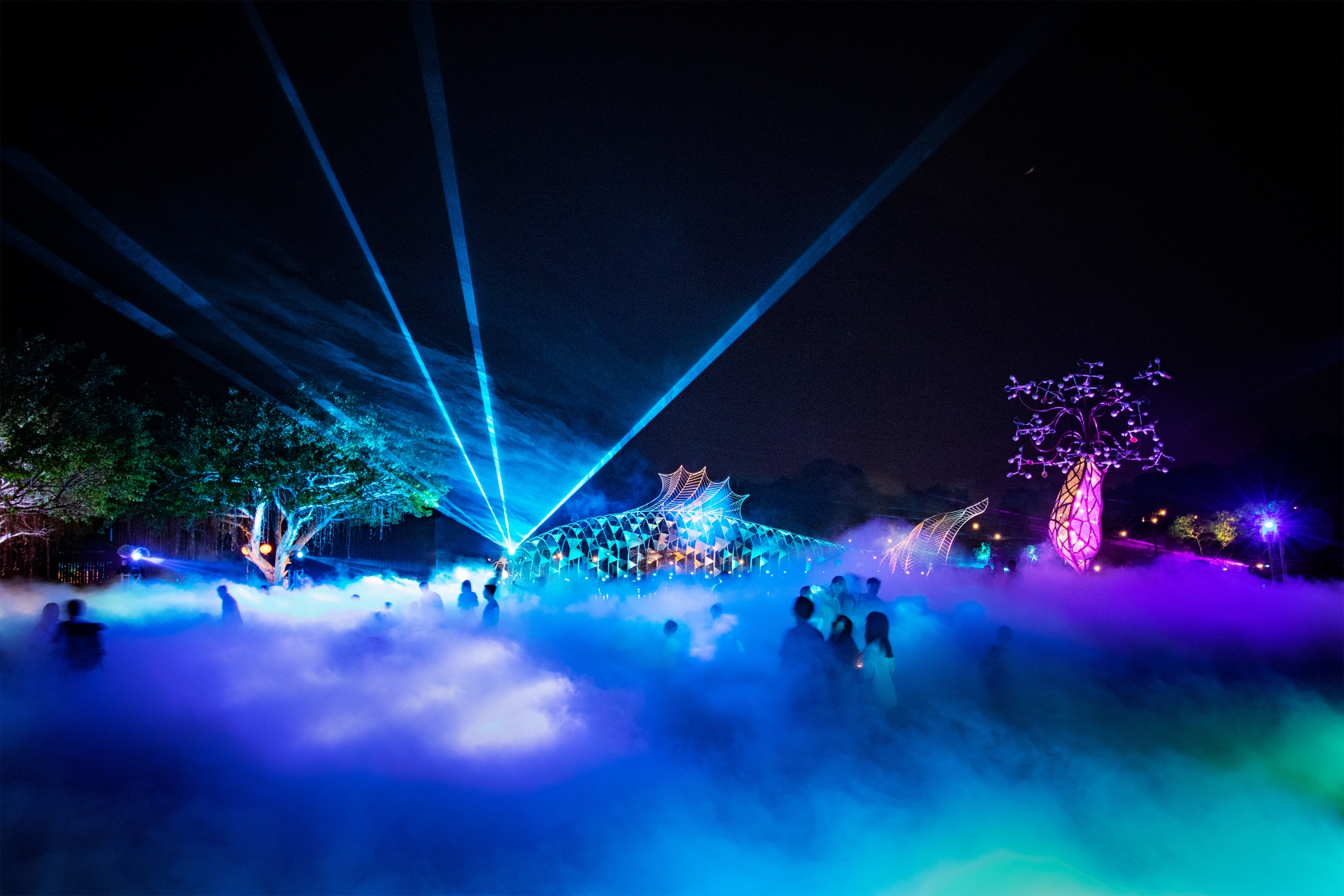 "Misty Forest" blends light and fog to create a mysterious, dreamlike atmosphere, immersing visitors in a timeless love story.