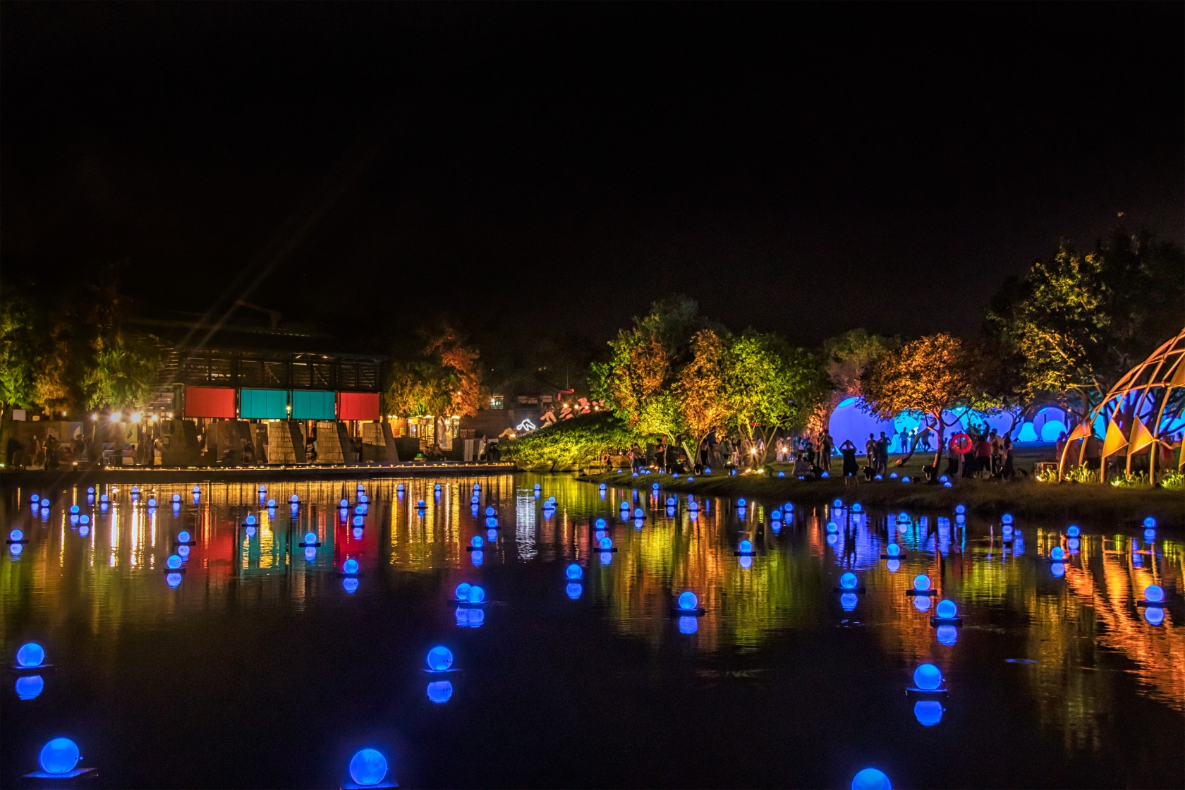 "Wishing Blue Tears" includes nearly 1,200 color-changing light spheres along the Moon River, simulating bioluminescent tears and representing individual wishes.