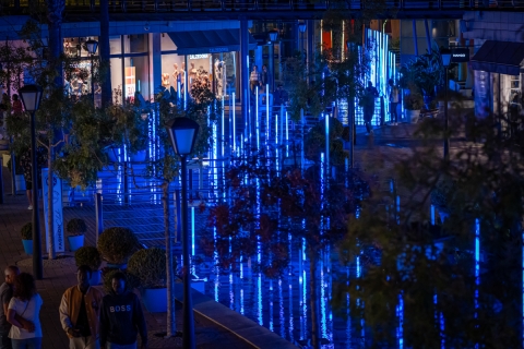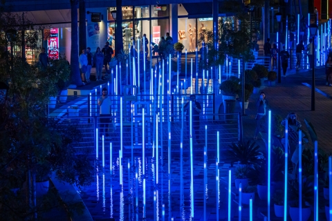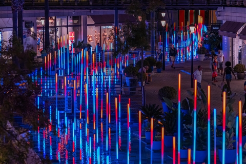 Elements, an interactive light art installation inspired by Fire, Water, Earth, and Air, offers a synchronized show where music and light dance in harmony. Participants control the display by moving their hands, engaging with the interactive totem to switch between elements.