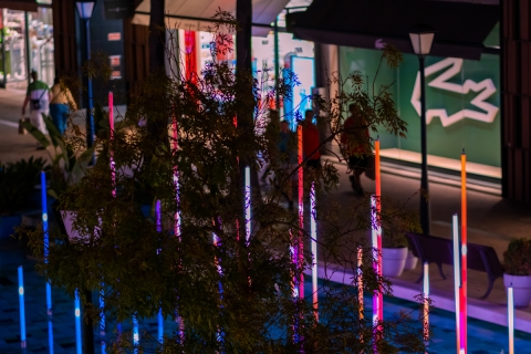 Considering the visitor, the installation empowers people to participate and interact with their environment. Recognizing the draw towards interactive art, the focus is on engaging people in their surroundings. This mesmerizing experience lets participants choreograph their symphony of illumination through the interactive totems, providing a powerful and reflective journey