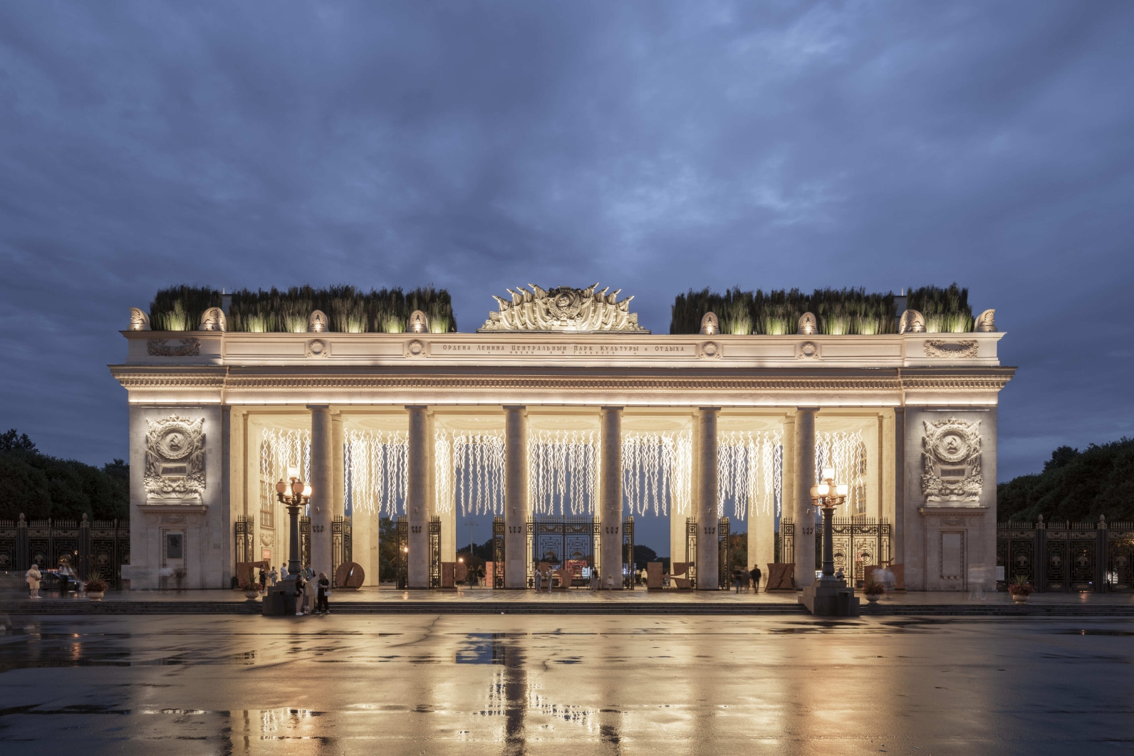 Entry DescriptionTime Forward is a unique interaction between art and time, adorning the main entrance arch of Gorky Park. This creative work has a three-part structure, symbolizing the past, present, and future.
