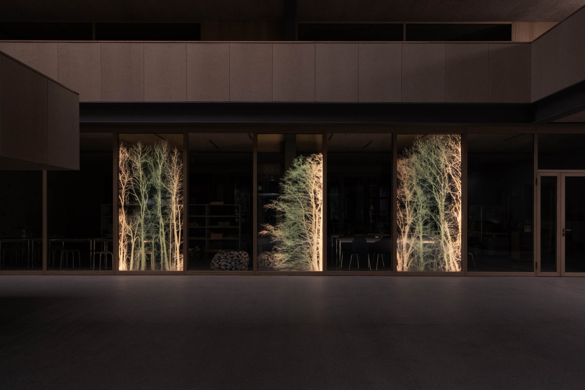 In autumn 2019, trees from the Lausanne region were selected and marked: their wood was to be used in the construction of the Plaines du Loup school building. Knowing that a tree takes several decades to grow, what remains of this substantial energy within the building once it’s built? Beyond the material transformed into parquet or panelling, does the life force of the felled tree remain in the architectural work, and influence the lives of users by contributing to the spirit of the place?