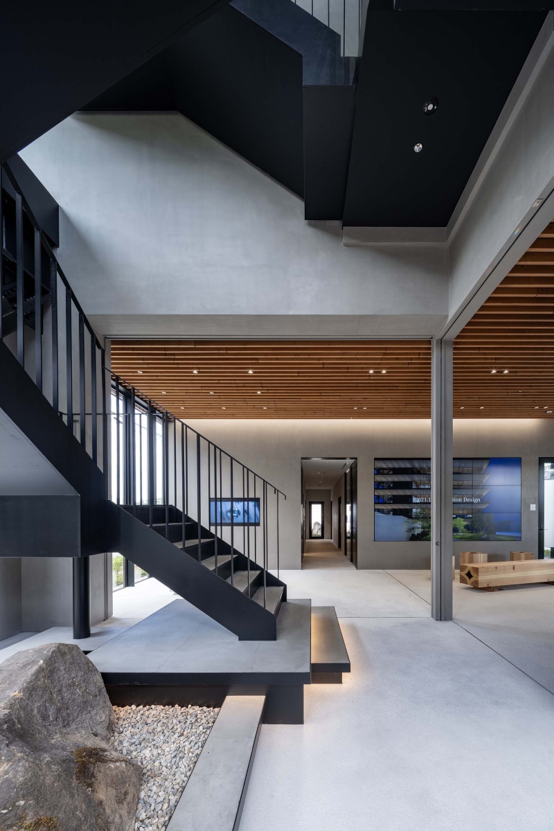 The open-air balcony brightly illuminates the wooden deck, bridging indoor and outdoor spaces and fostering different thinking and communication styles.