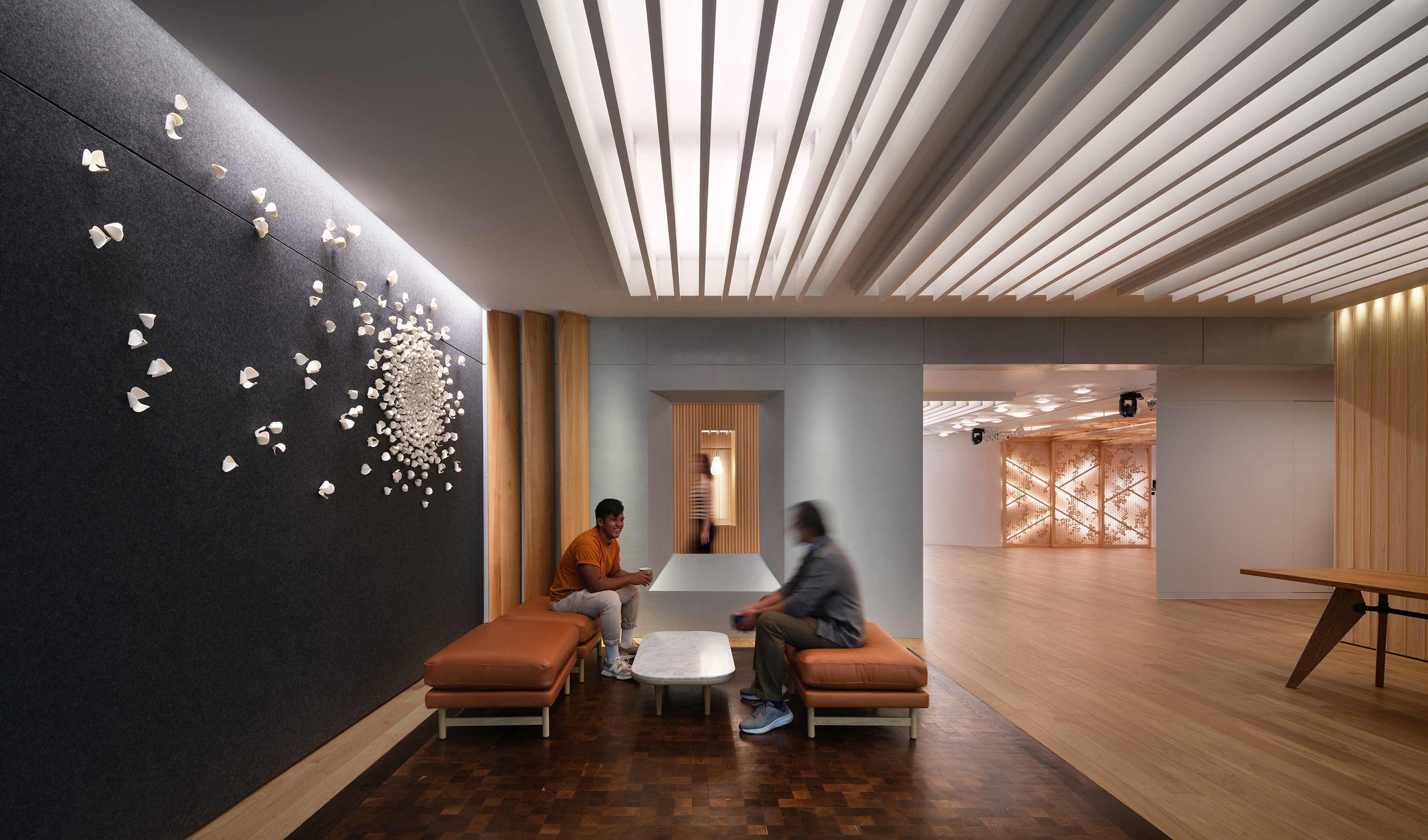 Entry DescriptionCanonical, a global software company, has created a London HQ that embodies their global culture of craftsmanship and innovation. Traditional Japanese carpentry and craft combine with a palette of British, European and American materials and art to reflect the company’s collegial diversity and create a contemplative atmosphere.