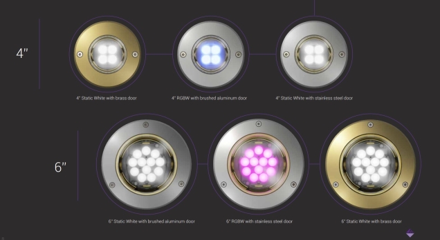 The Tierra ingrade family is available in two sizes, 4.4" and 6.38" in diameter, static white or Quad Tech RGBW and delivers up to 2414 lumens. Four color temperatures include amber limited wavelength. Its precision optical system delivers excellent controlled beam angles, and designers can choose from eight distributions to create their desired lighting effect.