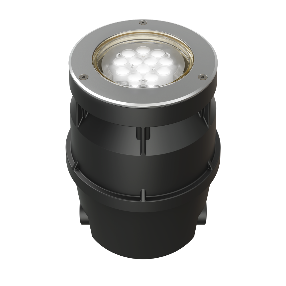 Tierra offers a higher density LED array than other ingrades, paired with precision optic and light shaping films to achieve a higher intensity for accent lighting and excellent uniformity with no hot spots or shadows for wall washing. As a result, the compact luminaire provides precision uplighting for columns, facades, and trees.