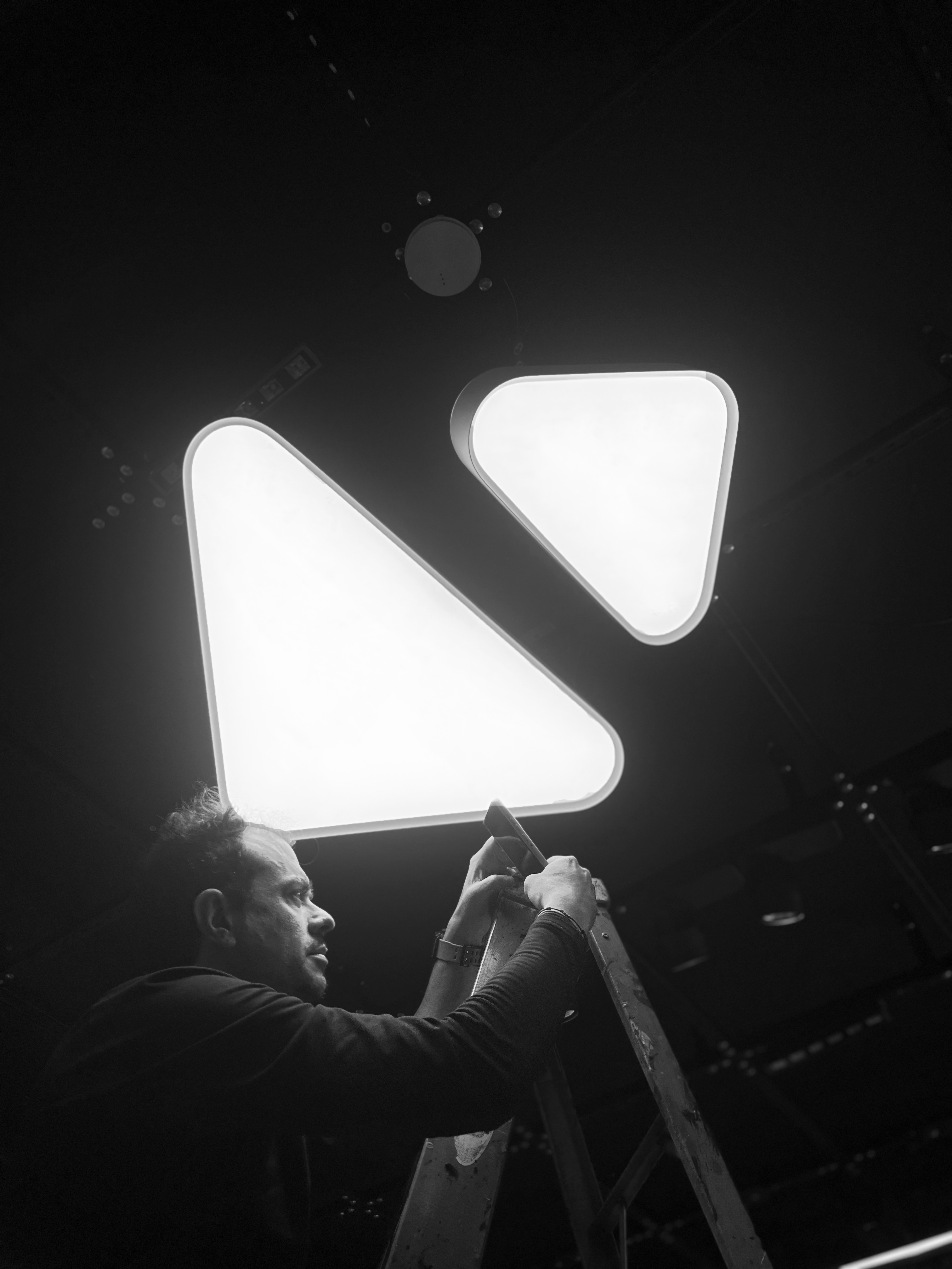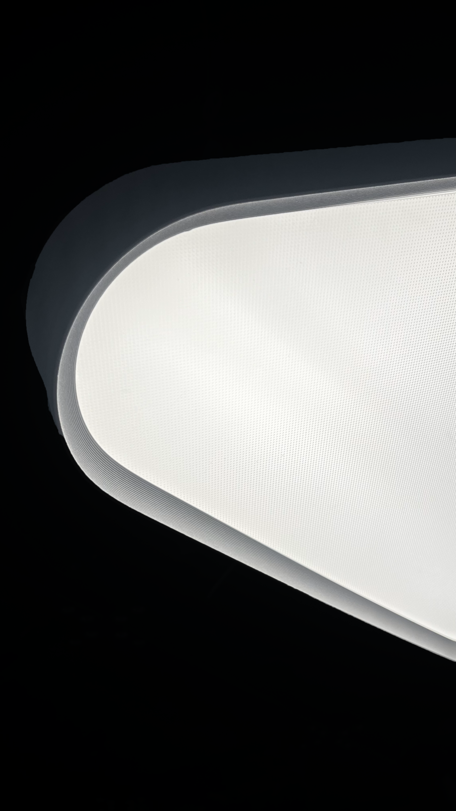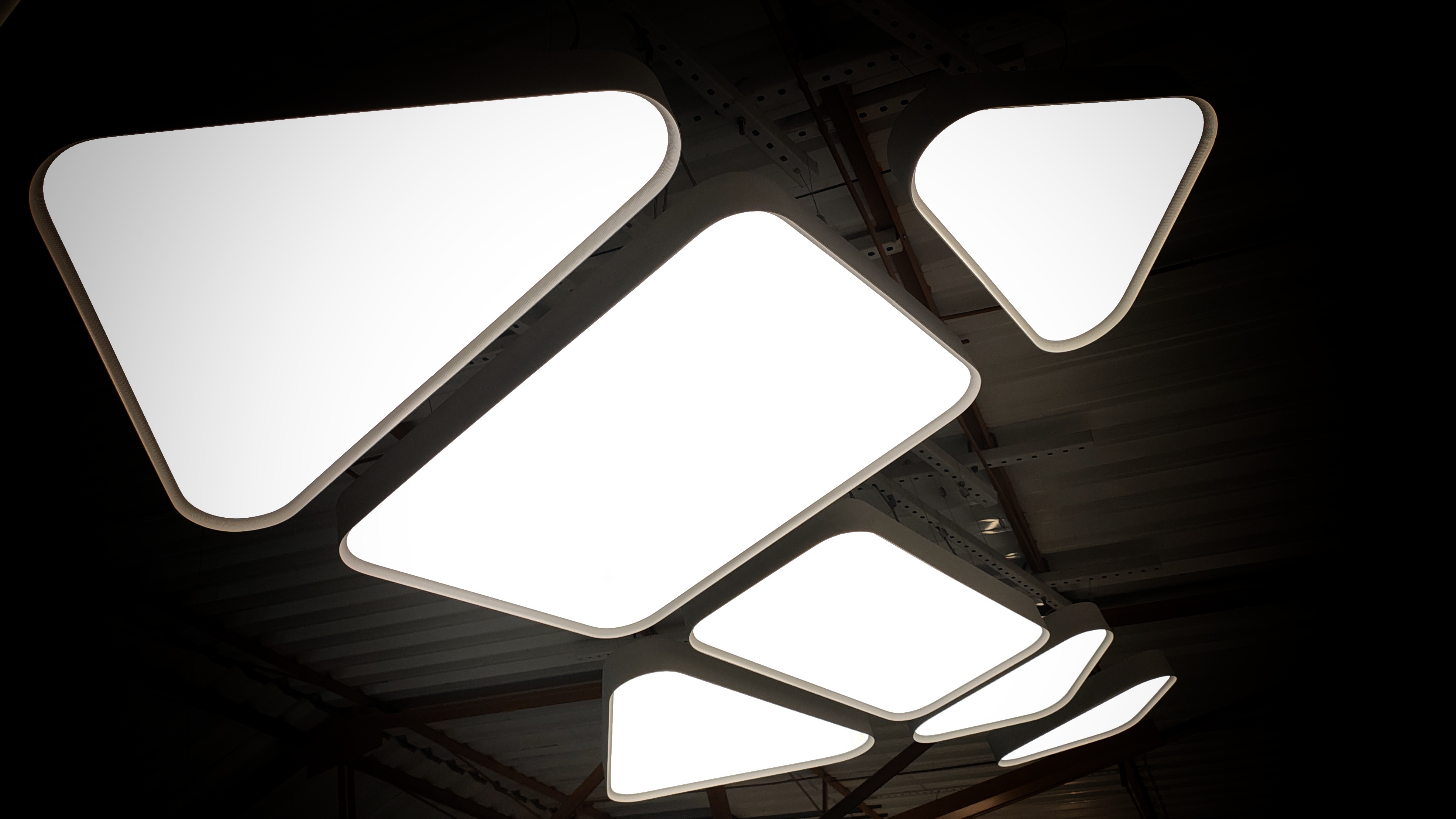 Made of aluminum with a microtextured paint finish, the luminaire is available in all the colors of our palette. It offers a dimmable option and comes in four shapes: triangular, circular, rectangular, and square. It can be installed either as a surface-mounted or pendant fixture, making it versatile for standalone use or compositions. It features prismatic optics, providing lightness, visual comfort, and robustness, with direct distribution, low UGR, and an integrated 24V driver.