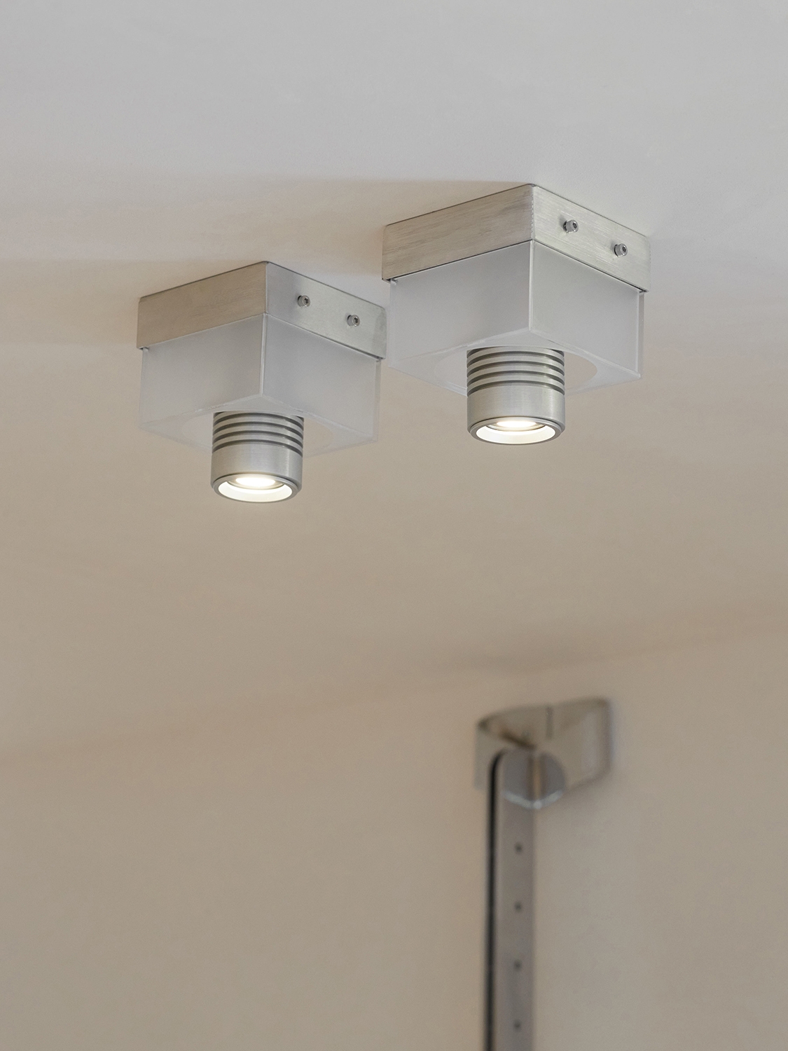 The exceptional performance characteristics married with austere simplicity makes it equally at ease and suited to diverse applications from retail to residential. A high CRI and R9 rating was critical to the design so it represents the true colour on what it illuminates. The 350 degree adjustable head enables it to double as an angled spot for illuminating displays.