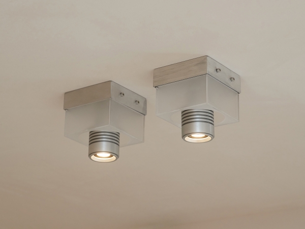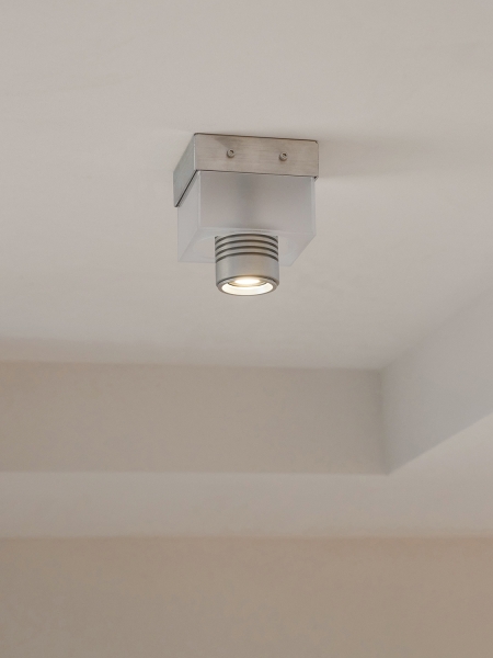 The fully adjustable spot features a folded aluminium base plate, welded and polished.