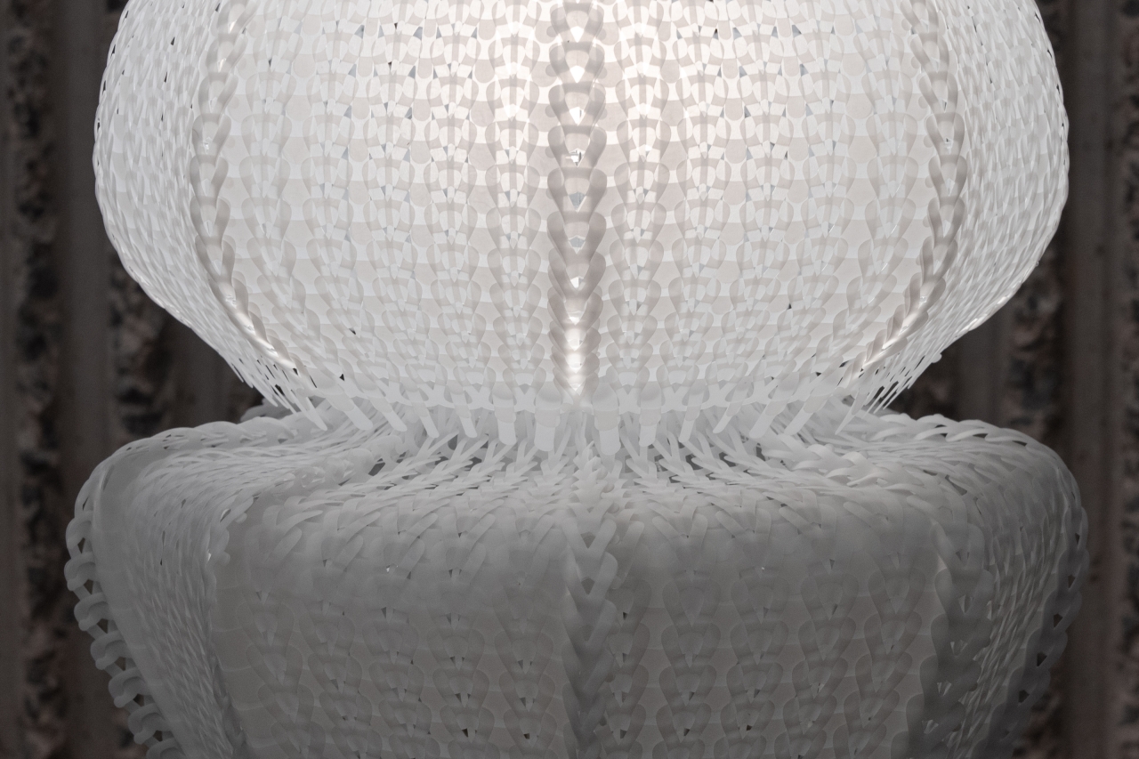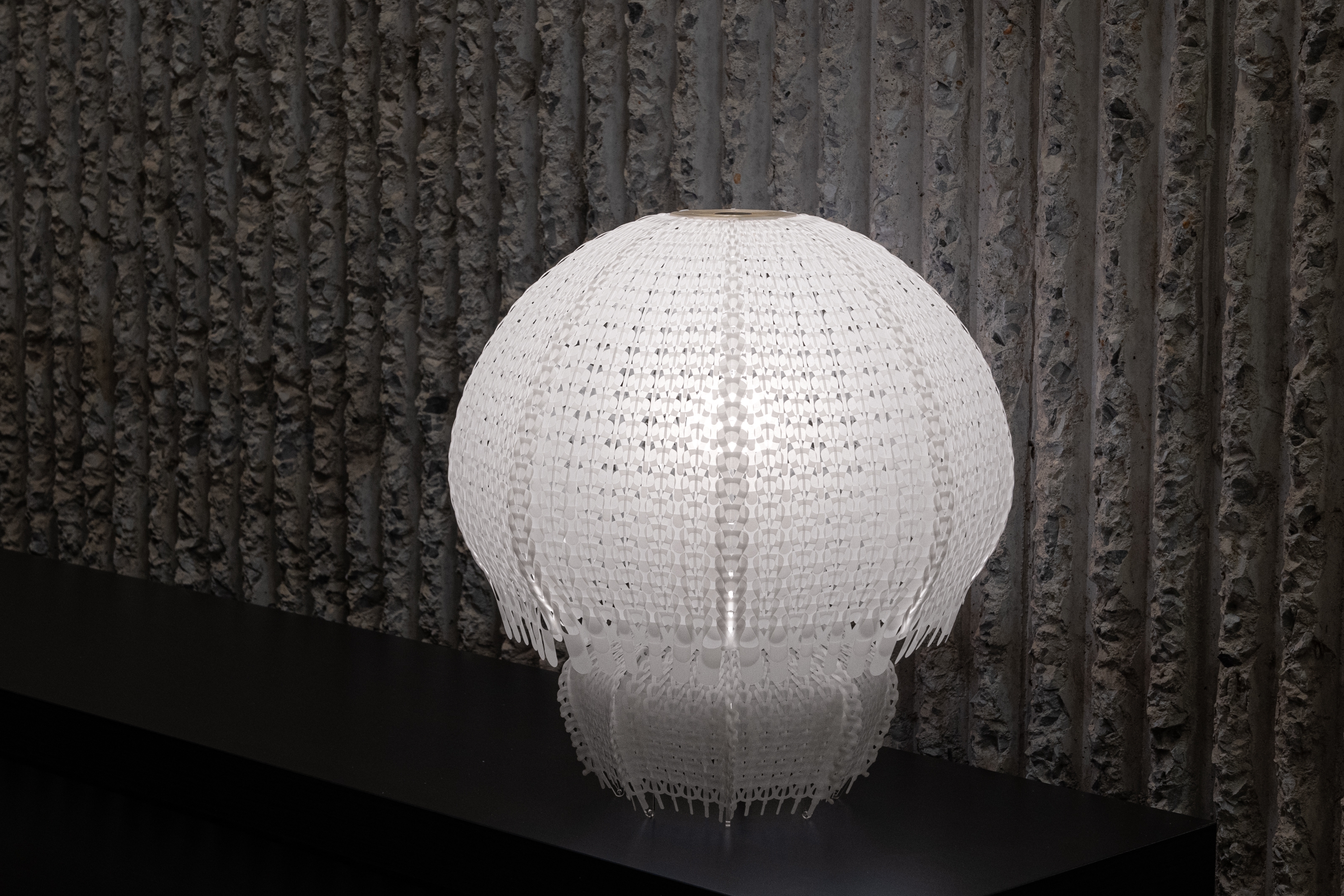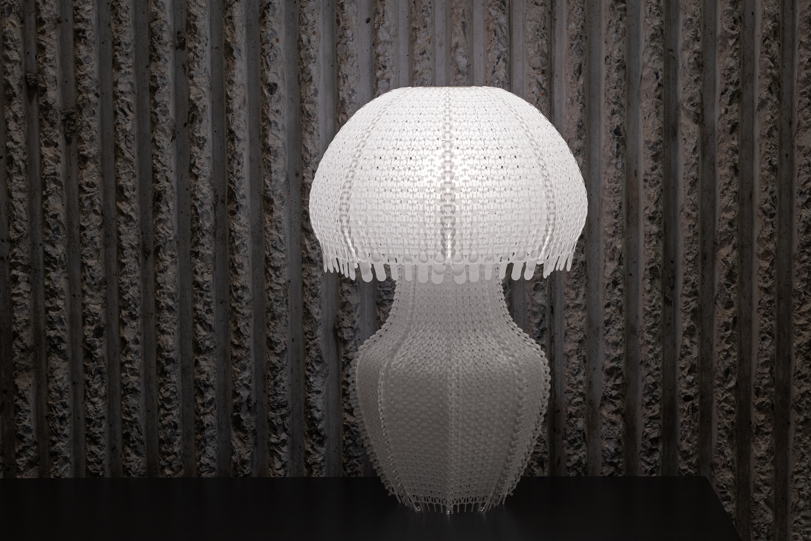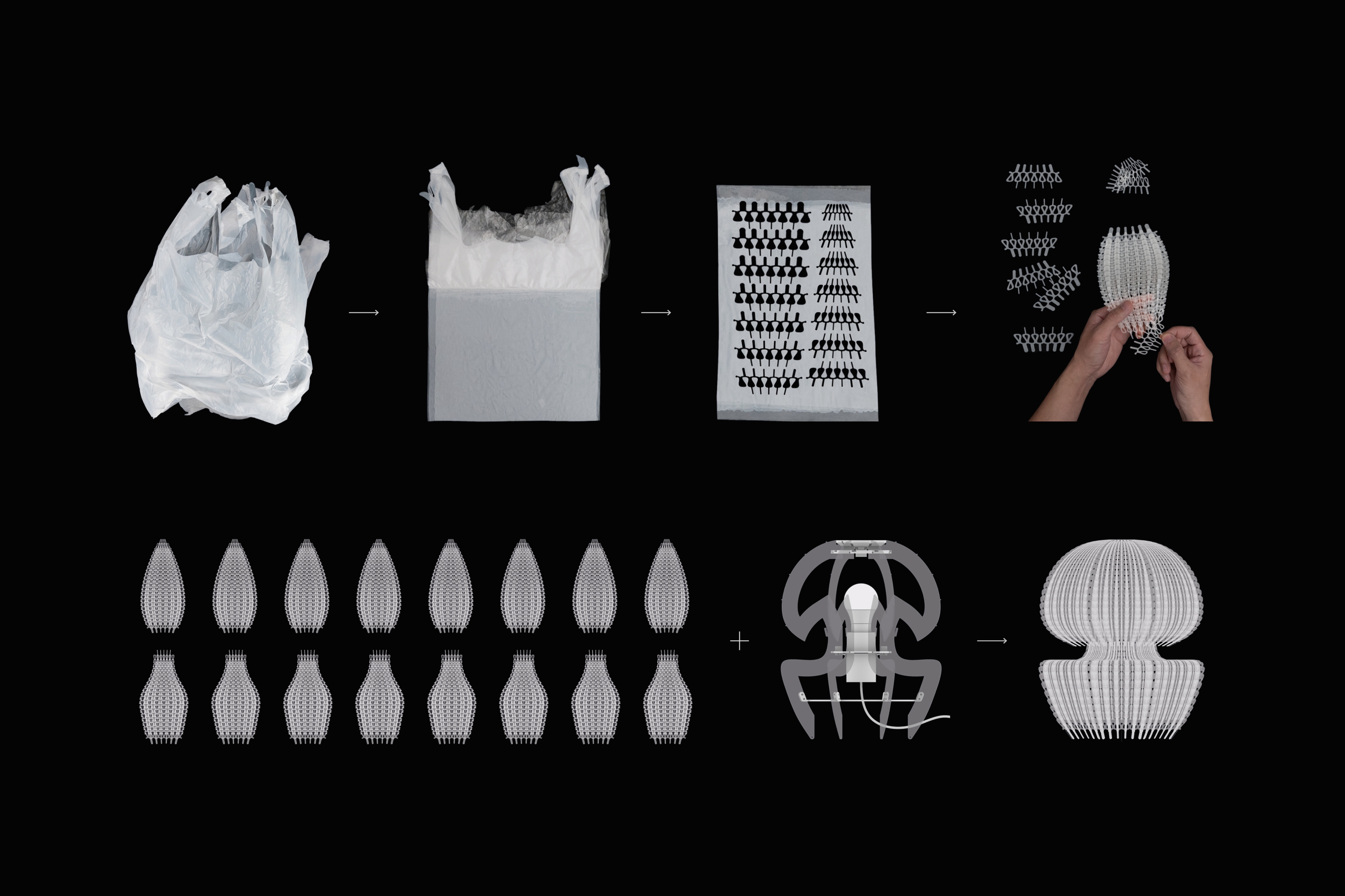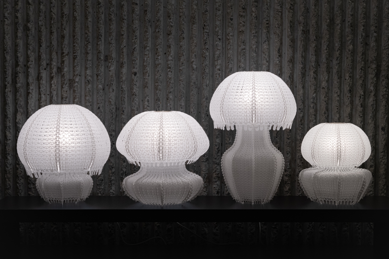 Sustainability ApproachPolycycle Illumination represents a sustainable approach to addressing the critical issue of oceanic plastic pollution. By repurposing discarded Polyethylene (PE) plastic bags into jellyfish-shaped elegant table lampshades, this collection pioneers a novel method of upcycling plastic waste to promote environmental sustainability.