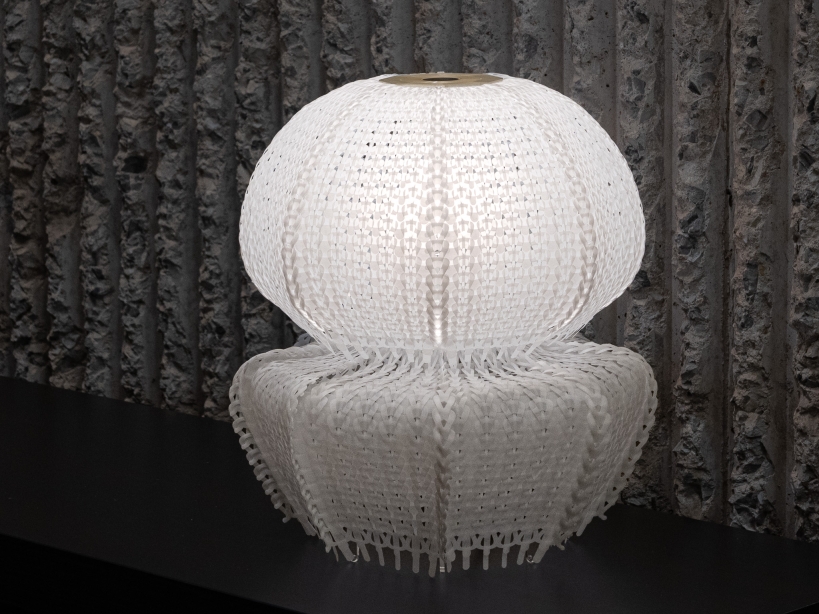 Entry DescriptionPolycycle Illumination is a collection of lamps crafted from upcycled Polyethylene (PE) plastic bags. Annually, approximately 500 billion to 1 trillion plastic bags are used globally, with an estimated 1% to 3% of them eventually entering the ocean. Due to their translucent film texture, discarded plastic bags drifting in the ocean resemble jellyfish, deceiving sea turtles and other marine animals into ingesting them. This ingestion can result in digestive issues and death among marine animals. Polycycle Illumination ingeniously addresses this threat by harnessing the flexibility, translucency, and thermoplasticity of discarded PE plastic bags. Through upcycling, layers of discarded plastic bags are cleaned and then fused via heat pressing into flexible, translucent plastic sheets, which are then fabricated into elegant jellyfish-shaped table lamps with computational design, digital fabrication, and craftsmanship. The aim is to extend the lifespan of plastic materials, reduce oceanic plastic waste, and foster a healthier marine ecological environment. Polycycle Illumination not only functions as a lighting resource to embellish indoor spaces with its elegant jellyfish-shaped design but also cultivates a profound emotional connection between users and the conservation of marine ecosystems.