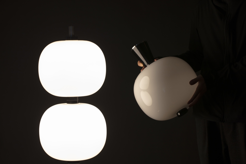 Tang Hulu floor lamp is an innovation by Msol Studio in home lighting environment. It is no longer a traditional static lamp, but a multi-functional and interactive home decoration. Three independent detachable glass bulbs are connected, allowing users to choose bulbs as needed.One light bulb is perfect when users read books or enjoy a glass of wine sitting on the floor.Two light bulbs create a proper ambience for friends chatting with lamp’s height same as large furniture.