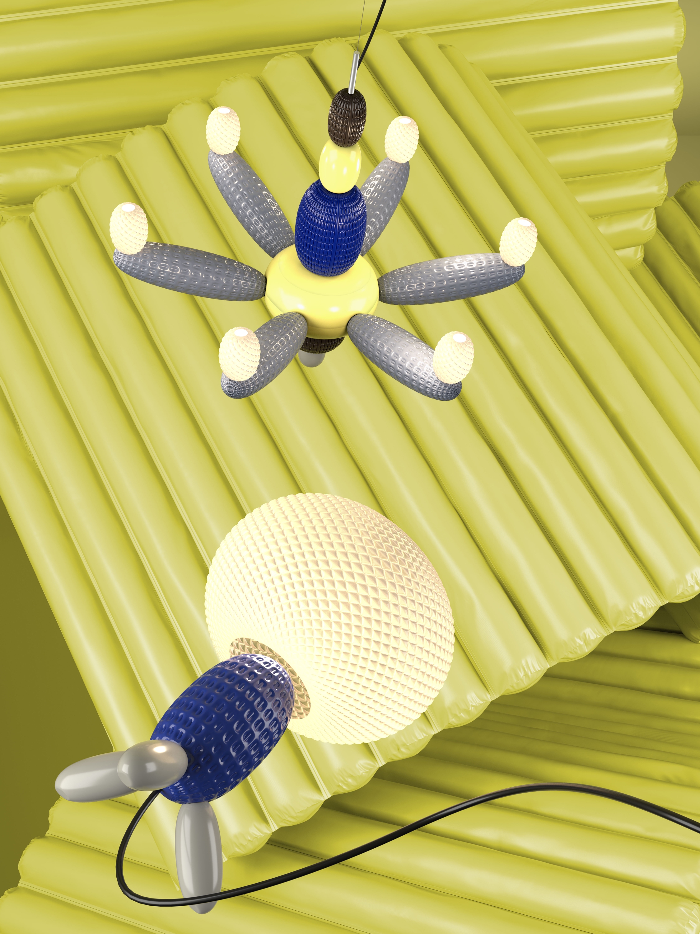 Soft Blown is a collection composed of two lamps: the Afloat chandelier and the Airbloom table lamp. Available in a variety of color ranges, the collection draws inspiration from the convivial spirit of balmy, sunny days when the streets are lined with performance artists effortlessly crafting colorful balloon creations.