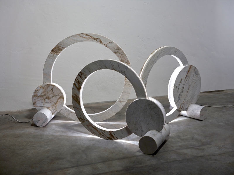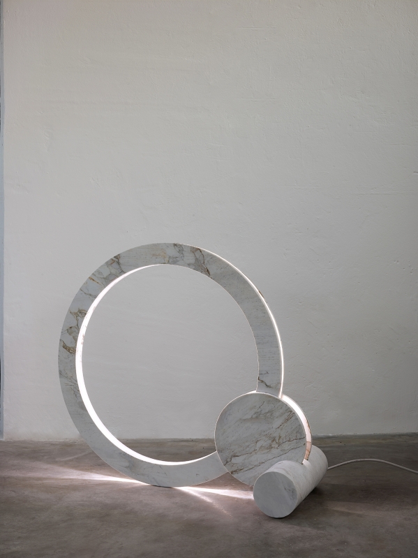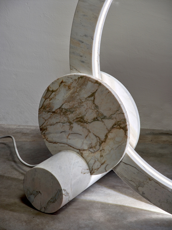 A piece produced for exhibition in Milan design week, made in Brazilian marble, but produced in Verno in Italy, with a design designed in a kinetic movement, pays tribute to artist Pol Bury.