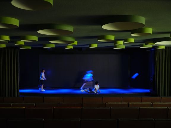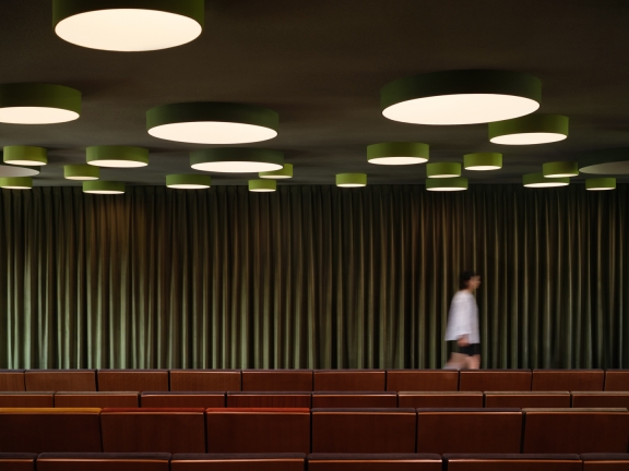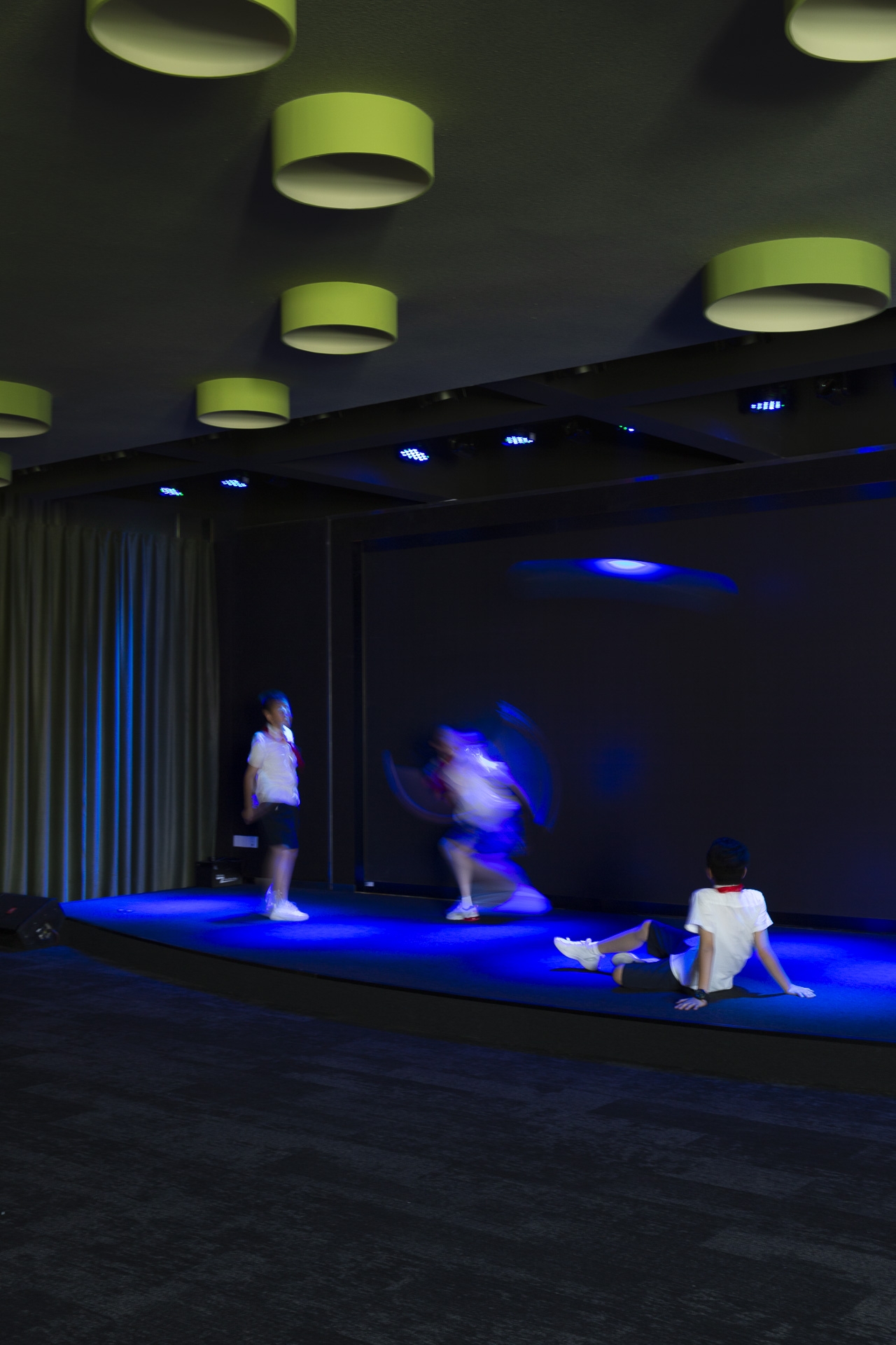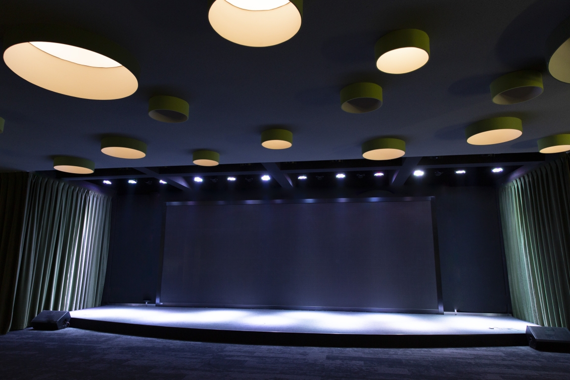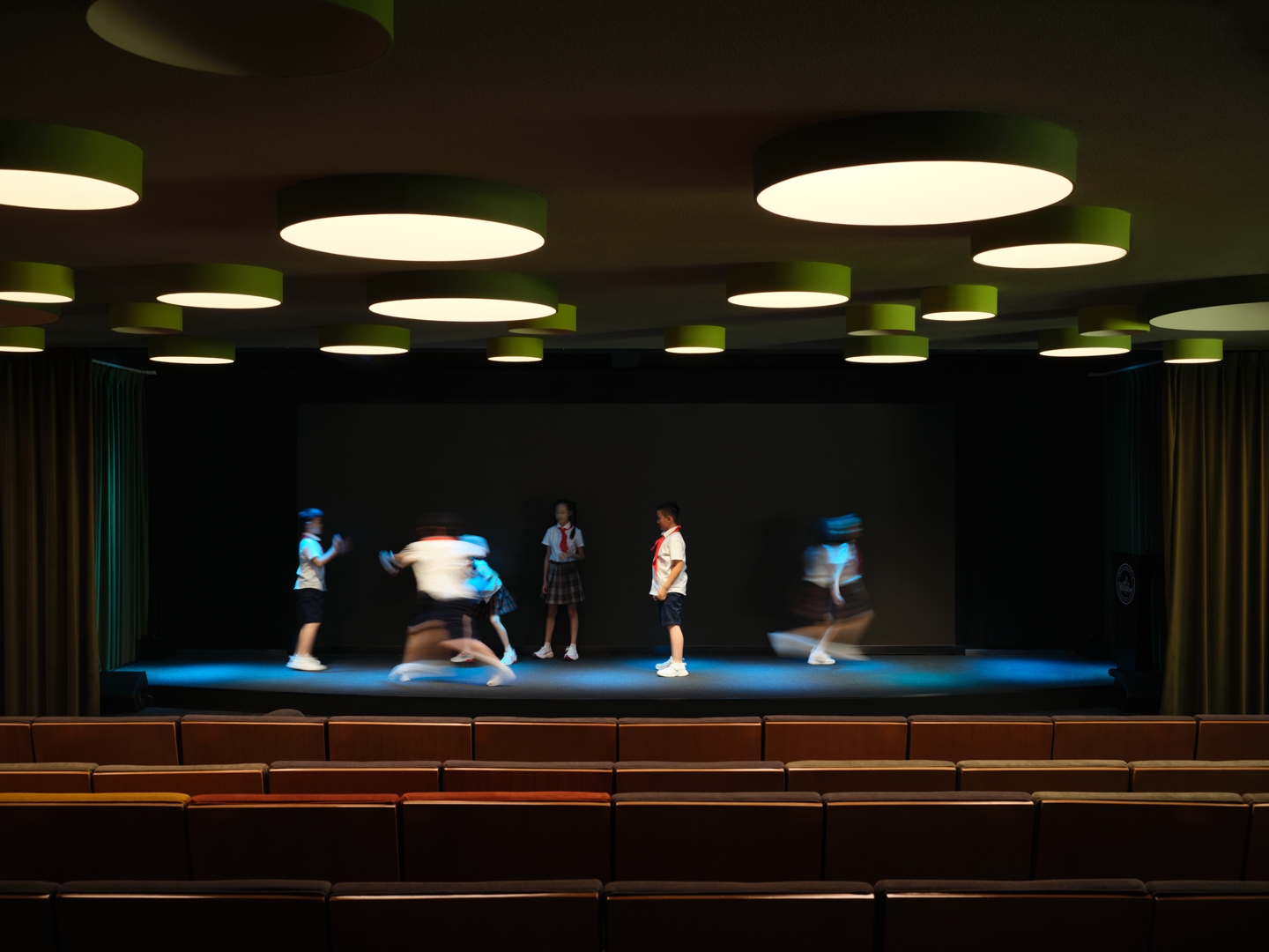 The stage is the center of the entire lecture hall, and the audience faces the stage directly when visitors from the entrance. The gradual spatial color light experience strategy, with brightness gradually darkening from the entrance to the stage, allows the audience's vision to better focus on the center of the stage, forming a good visual guidance.