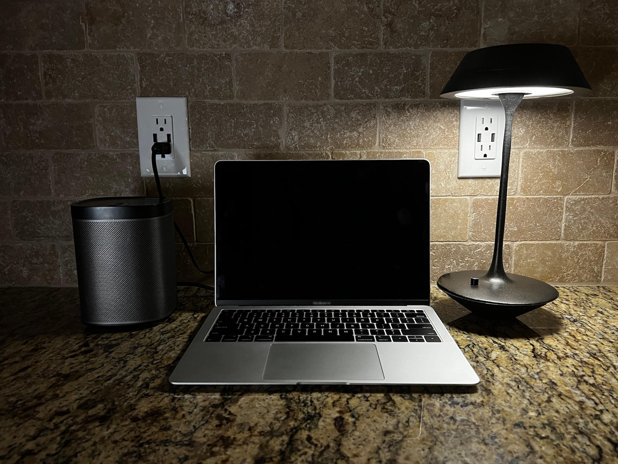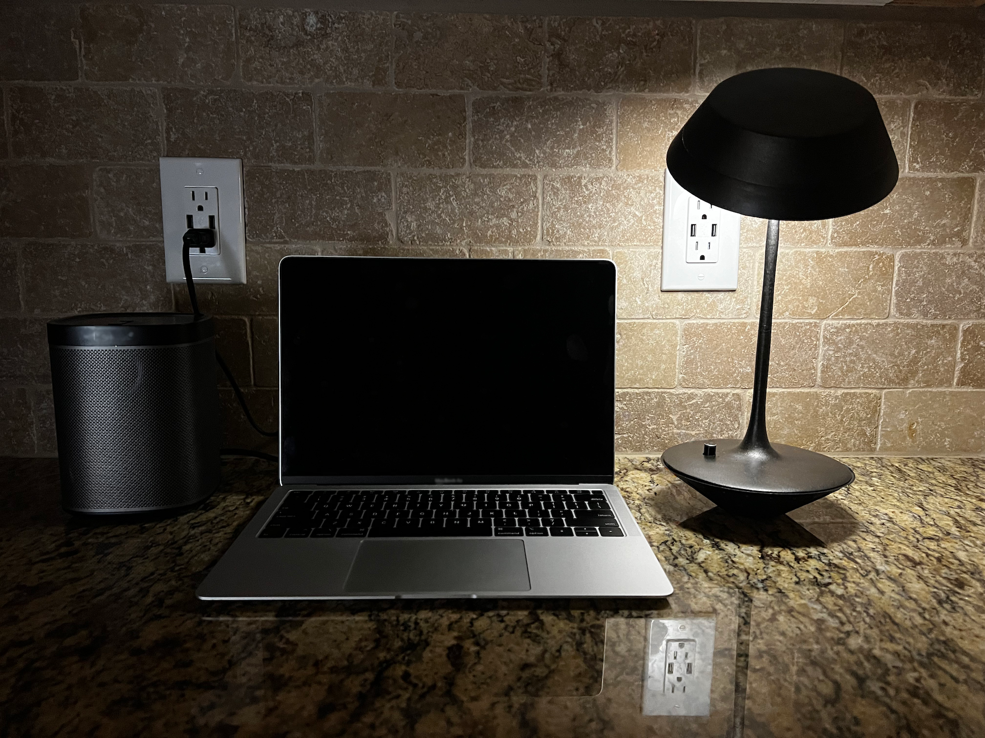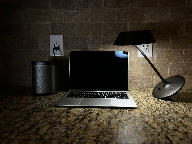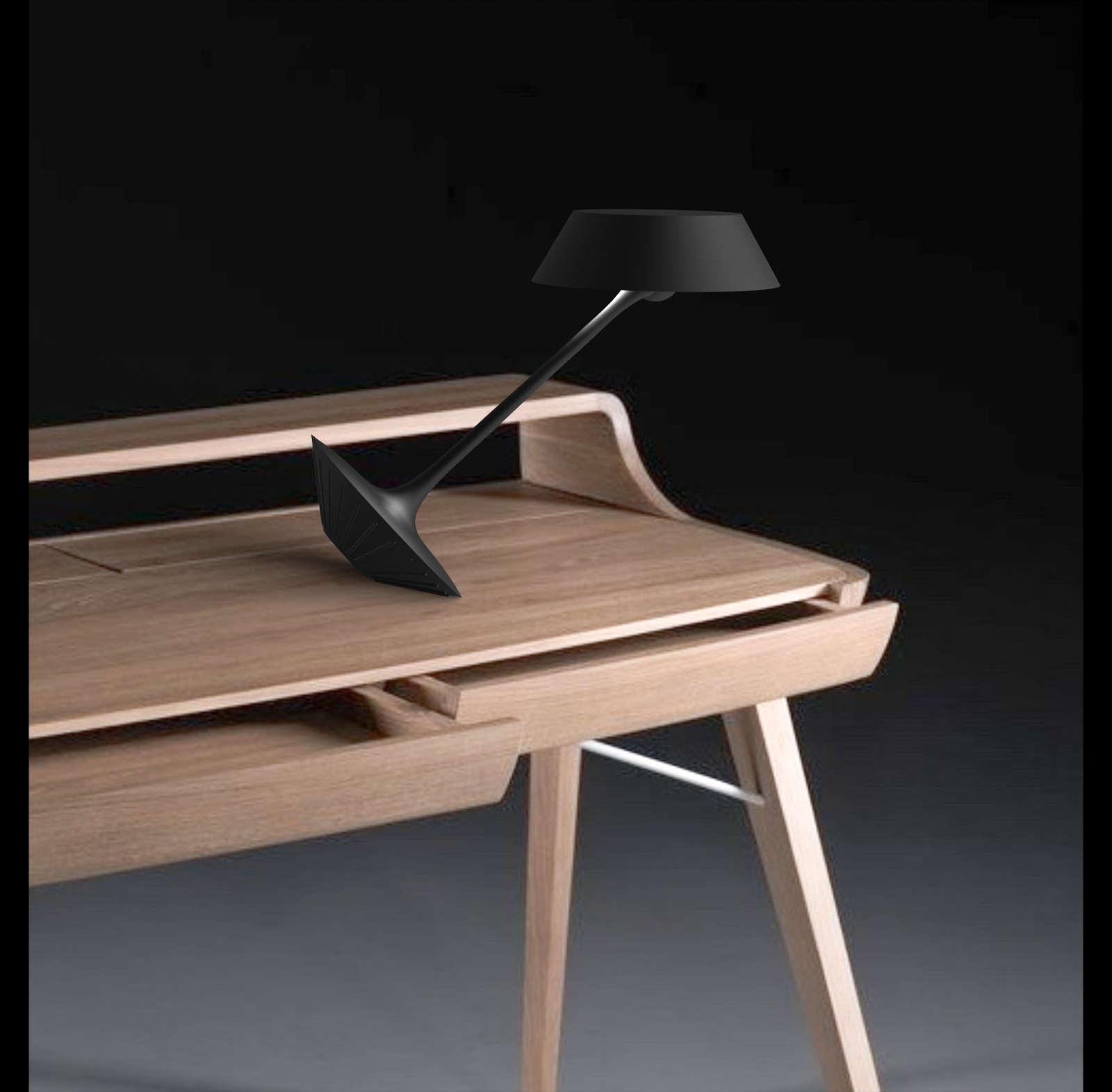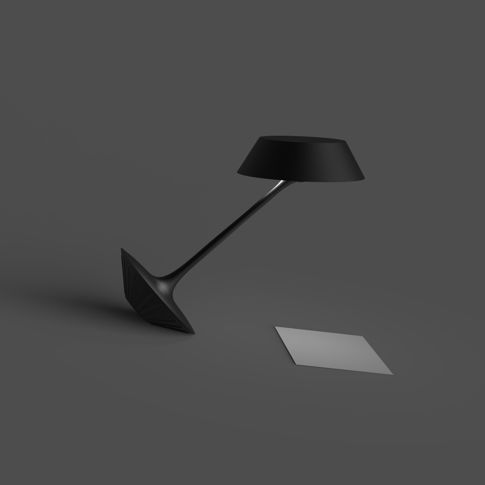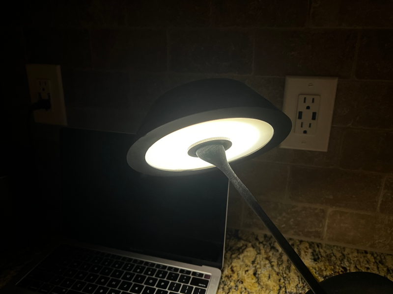 Lean Luminate blends into an office setting and transforms seamlessly between task lighting and ambient lighting with a perfectly weighted tilt feature. The tilt feature also allows the user move the lamp out of their way and tilt it to have perfect lighting. Since the lamp has a ball and socket joint, the light can be adjusted freely after it has been tilted. The light has a potentiometer to give the user a dimming feature to get their desired lighting level. The cone shapes that make up the base and shade look like almost identical shapes that make the tilting feature feel like magic. The base cone is stable with small cylinder protrusions to keep the conic base from rolling around.