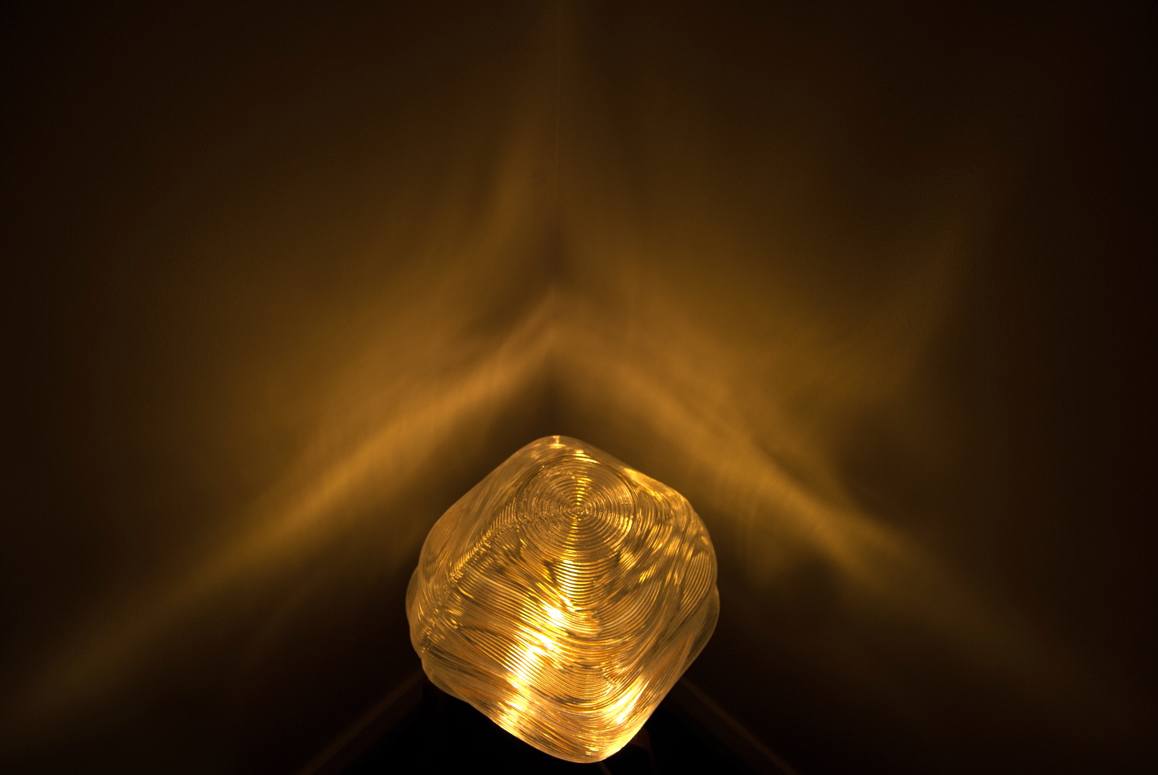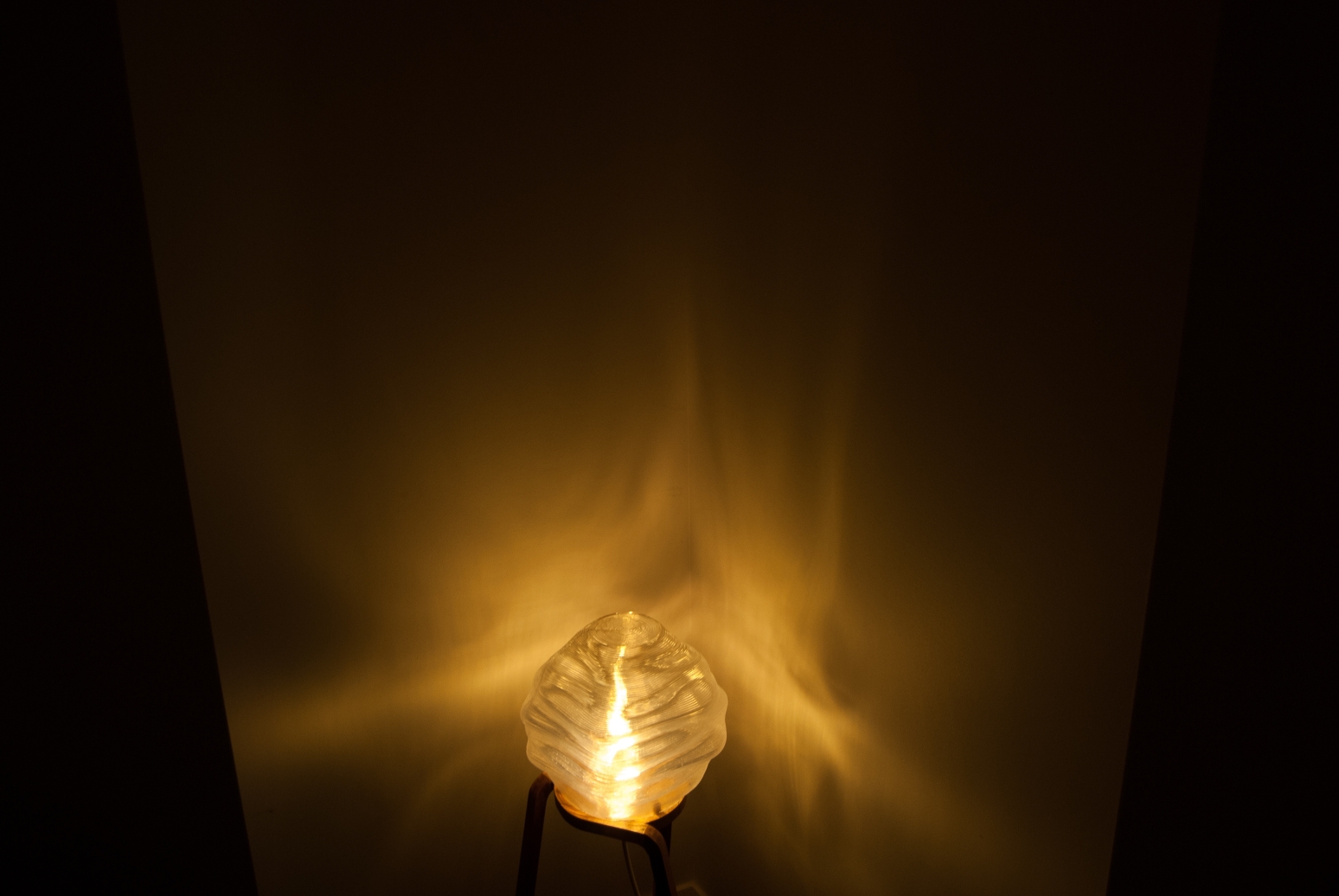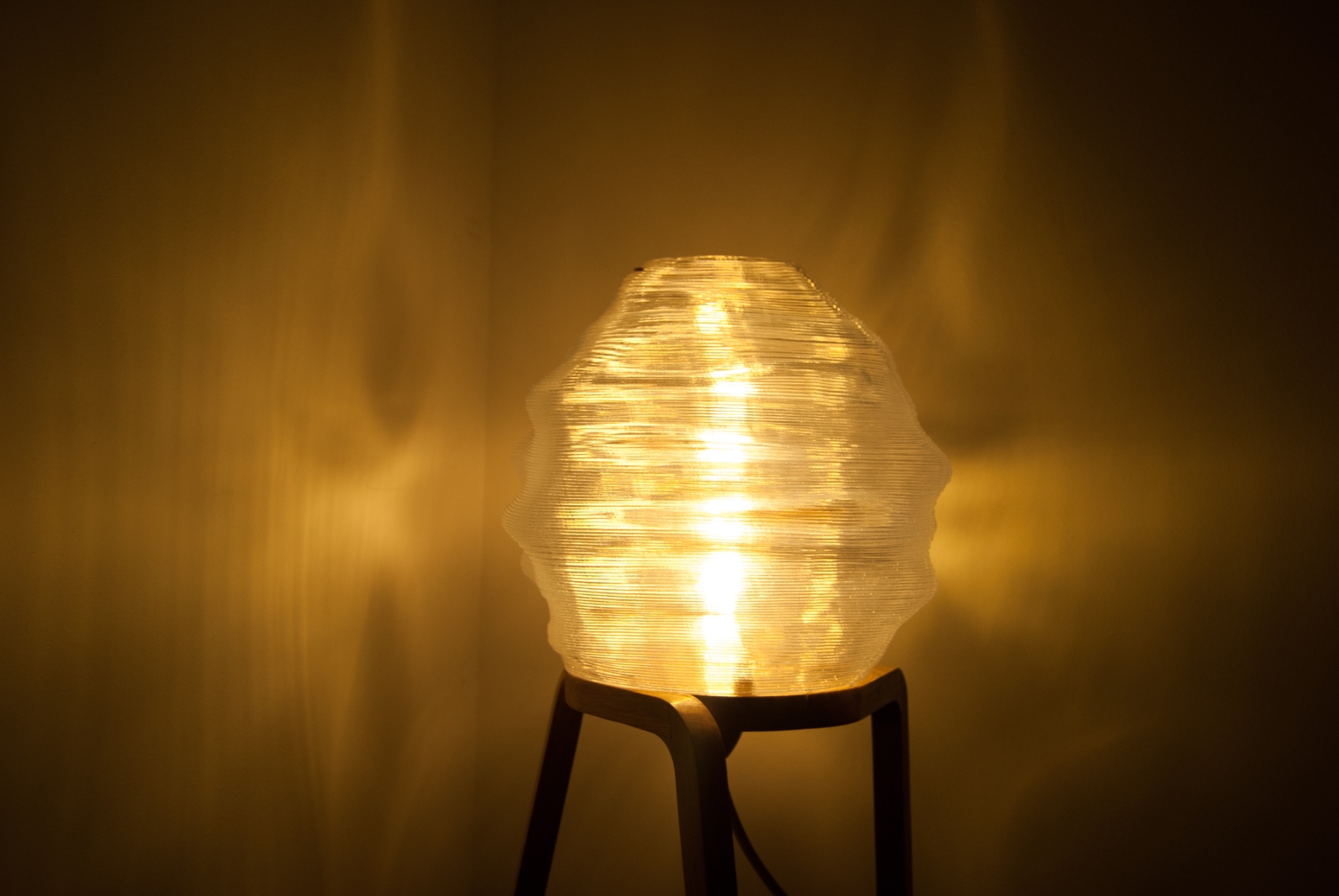 The form of the light diffuser is a reflection of the unique properties of the manufacturing process. The robotic FDM printer has a thick nozzle, resulting in layer heights of 2.5mm as opposed to traditional FDM printer layer heights of around 0.1-0.4mm. Thus, there is a focus on featuring and highlighting horizontal patterns to better leverage the aesthetic qualities of the thick layers consequential to the unique manufacturing process, and thus create a product that is visually and conceptually cohesive.
